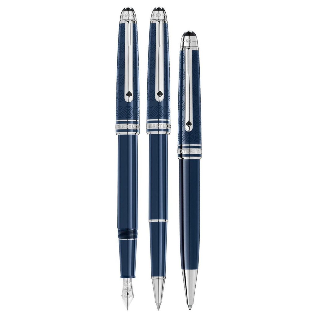 Bút bi Montblanc Meisterstuck Around The World Ballpoint Pen thuộc dòng Meisterstuck với mã số quốc tế là Montblanc MB126347. Được sản xuất tại Đức với thân bút làm bằng nhựa quý resin màu xanh biển đậm sang trọng. Cài và khoen được mạ platinum sáng bóng, đẳng cấp. Logo màu trắng có hình hoa tuyết 6 cánh đặc trưng trên đỉnh nắp bút. Cơ chế hoạt động là xoay nắp ngòi lò ra để viết. Màu mực mặc định là màu đen, thay ruột bút bi Montblanc khi hết mực. Là dòng bút bán chạy nhất hiện nay của hãng Montblanc.