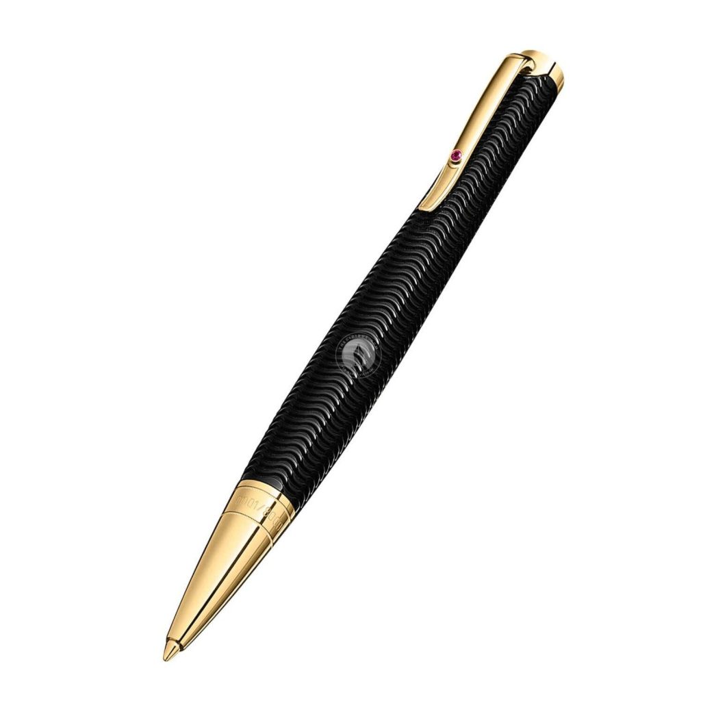 Toàn thân Montblanc Virginia Woolf được làm bằng nhựa resin quý màu đen với những đường khắc guilloche tuyệt đẹp bao phủ phần thân dưới dạng sóng mịn rất đẹp mắt và nổi bật.