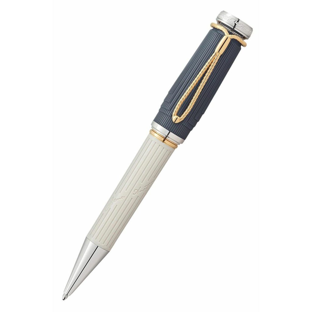 Chiếc cài bút với hình dáng như một sợi dây bện được đóng rút lại lấy cảm hứng từ hình dạng của chiếc kẹp. Những đường rãnh chạy dọc thân bút tô điểm cho thân nhựa màu xám sa thạch trang nhã cùng với chữ ký của Jane Austen được khắc hoạ trên đó.