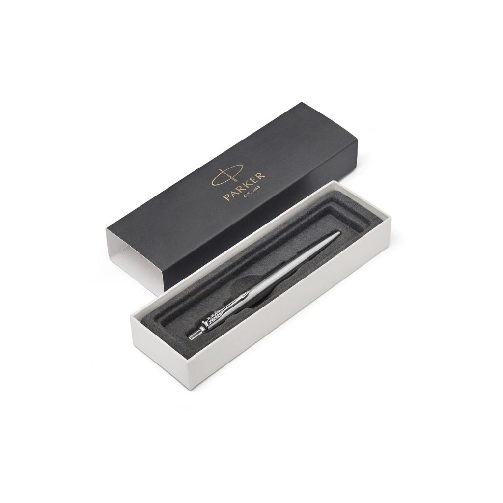 Bút bi parker jotter vỏ thép được trang bị cùng chiếc hộp bút được thiết kế mới đơn giản và tối ưu hơn. Chiếc hộp được thiết kế cẩn thận đến từng đường nét làm cho người sở hữu cảm nhận được sự đẳng cấp tuyệt vời của dòng bút ký Parker này rồi. Khi mua một chiếc Bút bi Parker Jotter còn đi kèm 1 phiếu bảo hành chính hãng 12 tháng và túi giấy đựng bút.