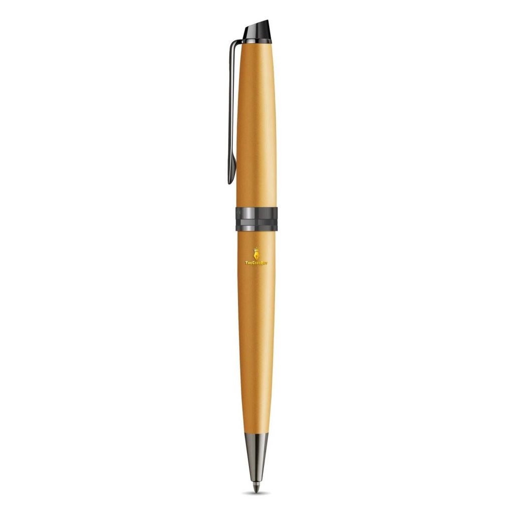 Thân bút bi xoay Waterman Expert Metallic được làm bằng đồng thau. Bên ngoài được phủ 1 lớp hoàn thiện bằng kim loại màu vàng mờ hợp thời trang và độc đáo. Đặc biệt là các chi tiết như cài bút, vòng ring, khoen được phủ ruthenium màu đen huyền bí và ấn tượng. Logo Waterman Paris được dập chìm trên cài và khoen bút với độ tinh xảo cao, rất tinh tế và sang trọng, kết hợp với hình dáng vượt thời gian.