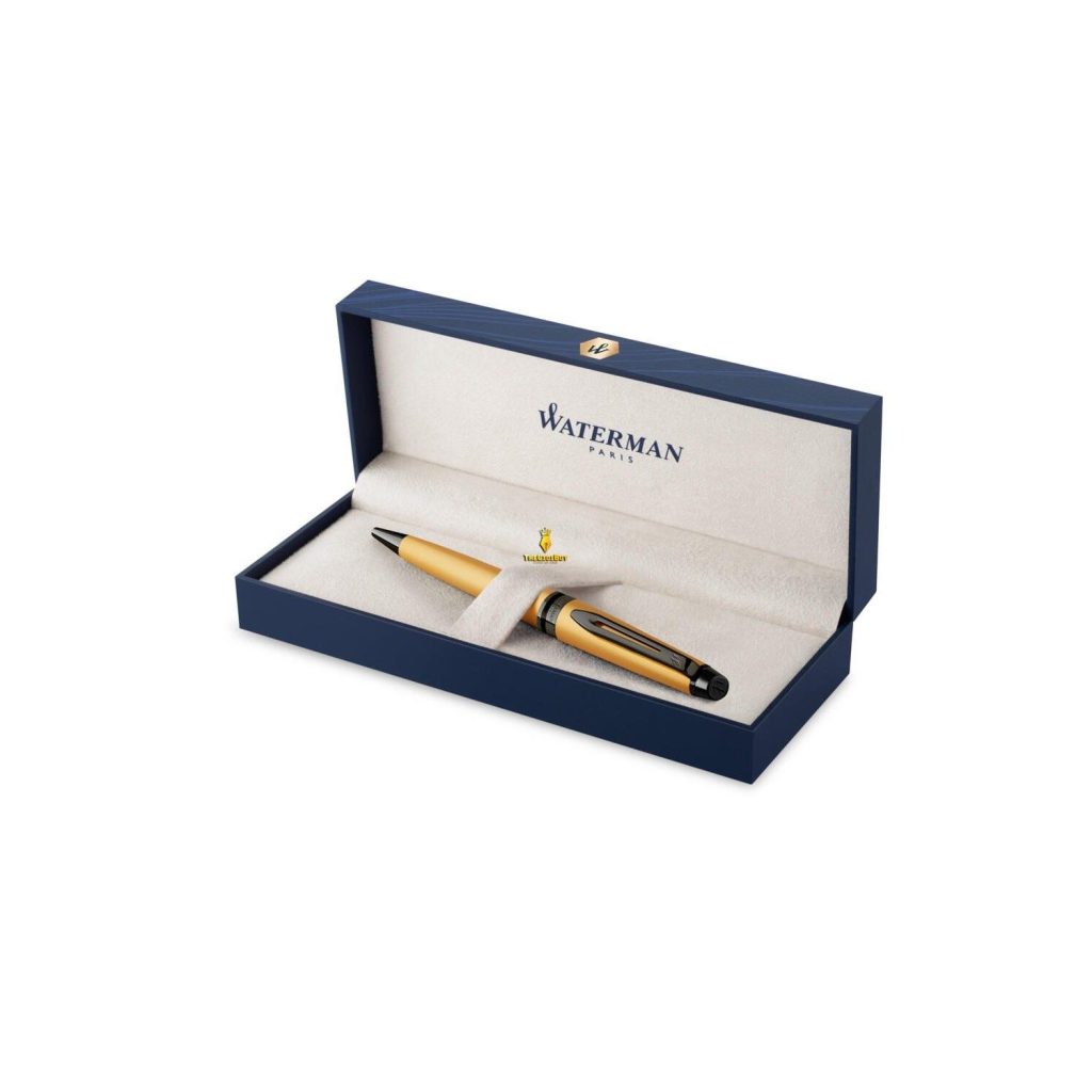 Đi kèm với chiếc bút là một chiếc hộp màu xanh dương rất đẹp mắt, thể hiện sự thông minh và lối sống hào hoa của người Pháp. Một đất nước đầy lãng mạn và giàu cảm xúc cũng là cội nguồn của những câu chuyện nổi tiếng trên thế giới. Tất cả từ bút cho đến hộp đều được sản xuất tại Pháp. Mỗi cây bút ký Waterman do Thế Giới Bút phân phối sẽ có một ruột bút được lắp sẳn vào trong thân bút, phiếu bảo hành 12 tháng và túi giấy sang trọng kèm theo.