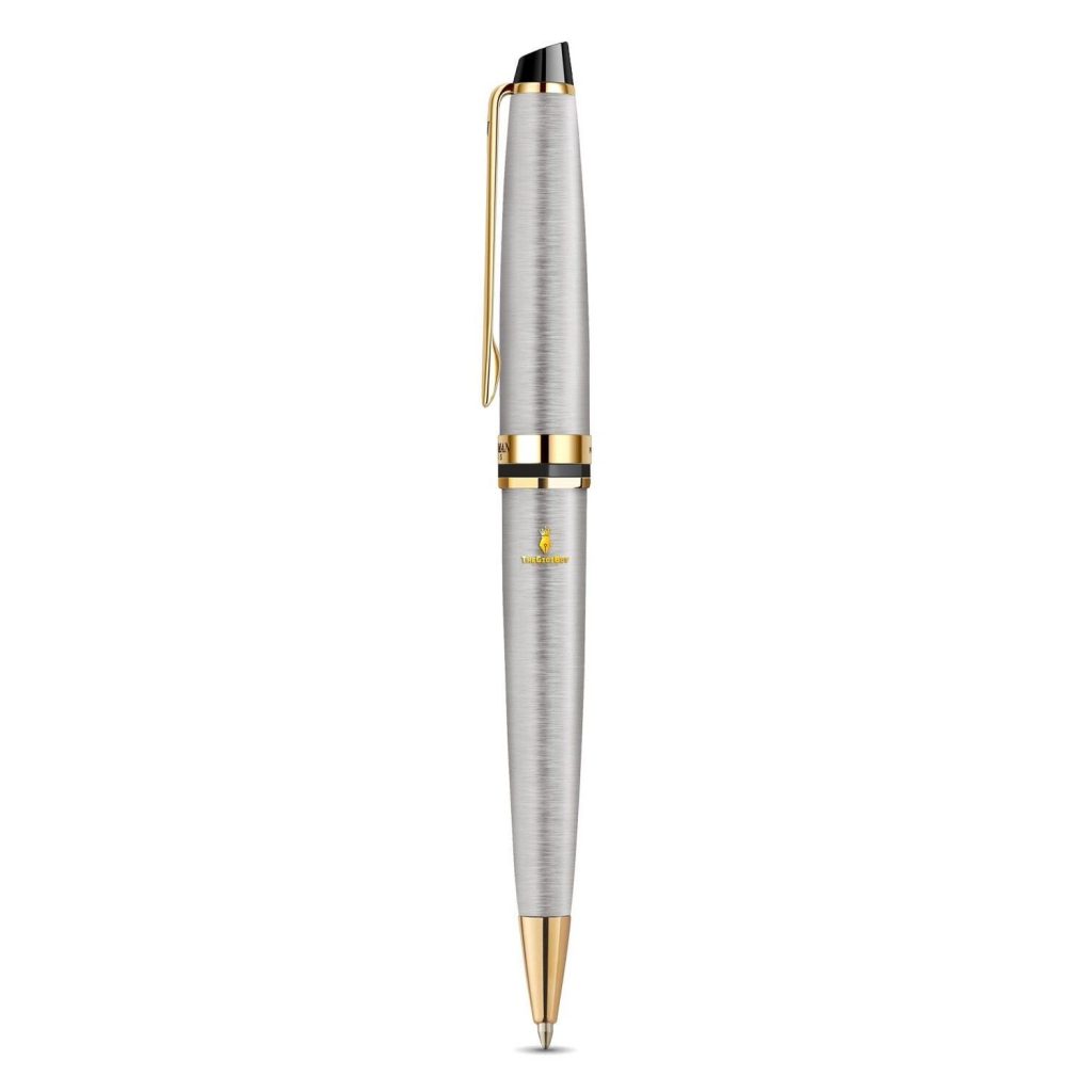 Các bộ phận như khoen bút, cài bút được mạ vàng 23k sáng bóng, siêu bền. Kết hợp với với màu bạc ánh kim của thân bút tạo nên sự mạnh mẽ, đương đại và sang trọng vượt thời gian. Bút bi Waterman Expert cho bạn khám phá cảm giác thú vị của bút ký với phong cách sành điệu, làm đẹp nét chữ, đồng thời mang đến trải nghiệm viết sang trọng và độc đáo.