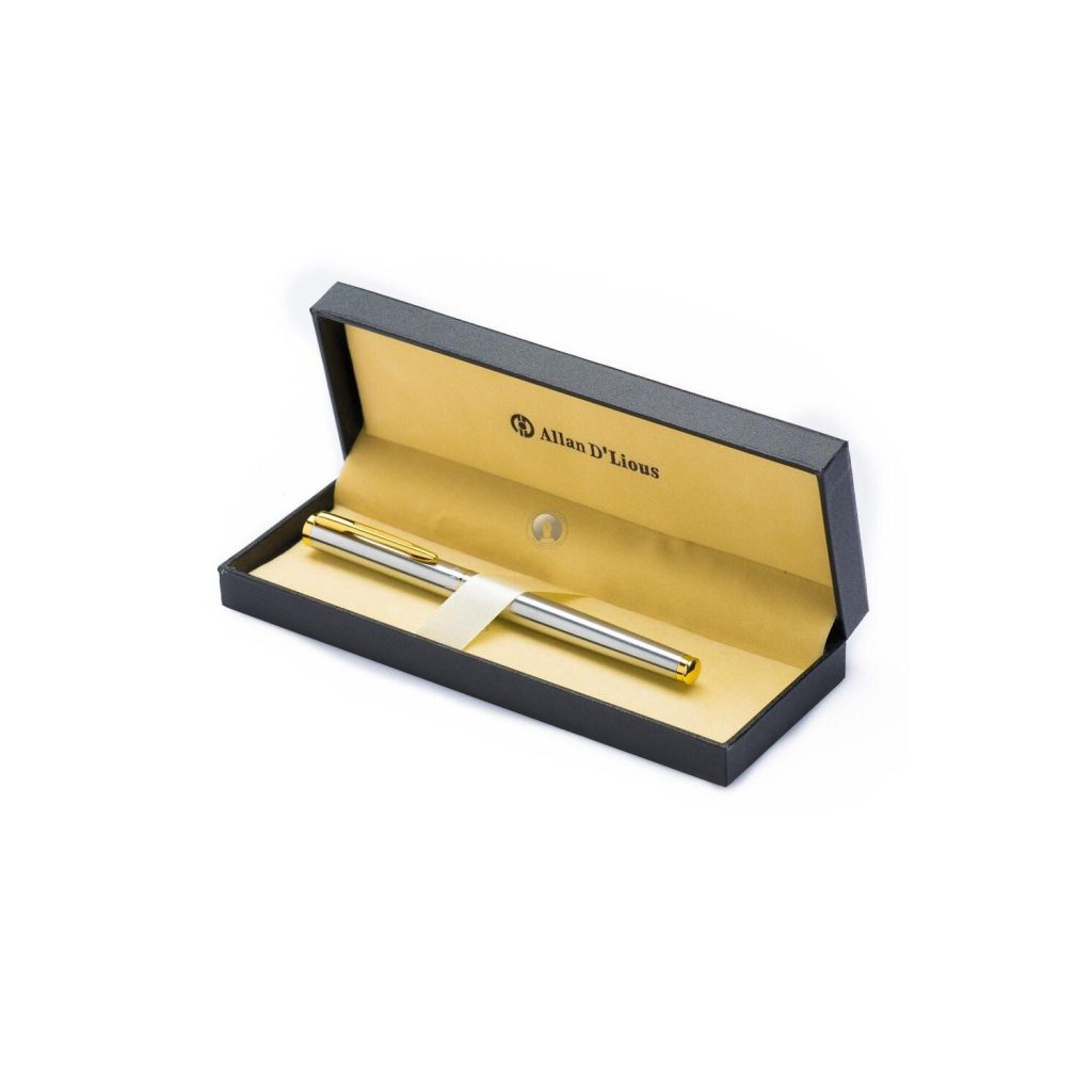Bút dạ bi Allan D’lious 0302RG là chiếc bút ký thuộc dòng 0302 bán rất chạy tại thị trường Việt Nam. Cấu tạo thân bút làm bằng thép không rỉ nguyên bản cao cấp rất sang trọng và bắt mắt. Các chi tiết như khoen, đầu cap, cài bút cũng như phần nắp đấy được phủ vàng công nghệ sáng bóng và đẹp mắt.