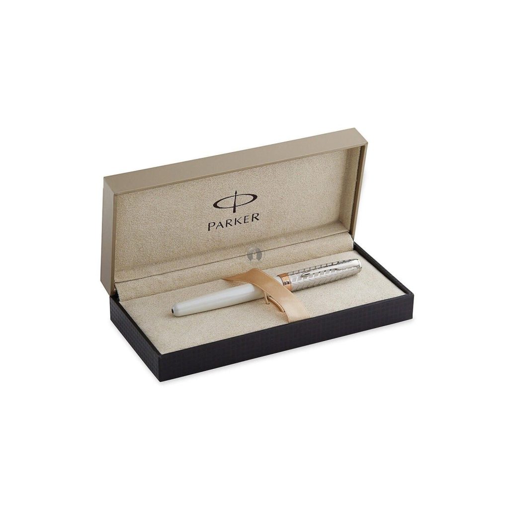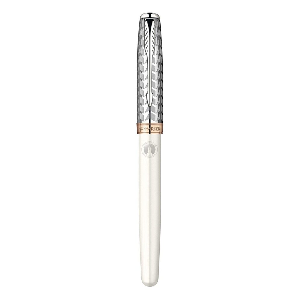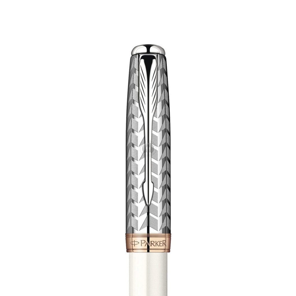 Nắp bút làm bằng thép không gỉ được tạo hoa vân tinh xảo và rất nghệ thuật. Thân bút Parker Sonnet Metal & Pearl GT Rollerball S0947330 được phủ nhiều lớp sơn mài màu trắng ngọc trai cao cấp cho độ bền cao và rất quyến rũ và quý phái. Chiếc bút Parker Sonnet S0947330 bao gồm 17 phụ kiện được lắp ráp bằng tay một cách tỉ mỉ để có chất lượng hoàn hảo, mang lại độ chính xác cao và sự thoải mái khi viết. Vòng khoen, đỉnh đầu nắp và nắp đậy thân cùng với cài bút Parker Sonnet với hình mũi tên đặc trưng cũng được mạ vàng hồng sáng bóng và tinh xảo. Có thể nói, chiếc bút dạ bi Parker Sonnet là một tác phẩm của vẻ đẹp, biểu tượng của nghề thủ công Parker, mang lai phong cách tinh tế cho mọi dịp khi chúng ta viết lách.