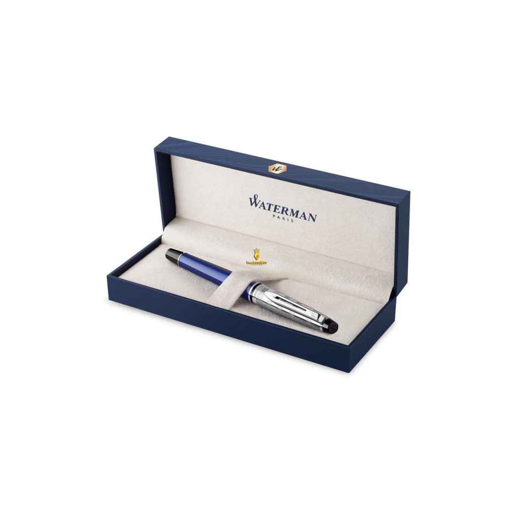 Đi kèm với chiếc bút là một chiếc hộp màu xanh dương rất đẹp mắt, thể hiện sự thông minh và lối sống hào hoa của người Pháp. Một đất nước đầy lãng mạn và giàu cảm xúc cũng là cội nguồn của những câu chuyện nổi tiếng trên thế giới. Tất cả từ bút cho đến hộp đều được sản xuất tại Pháp. Mỗi cây bút ký Waterman do Thế Giới Bút phân phối sẽ có một ruột bút được lắp sẳn vào trong thân bút, phiếu bảo hành 12 tháng và túi giấy sang trọng kèm theo.