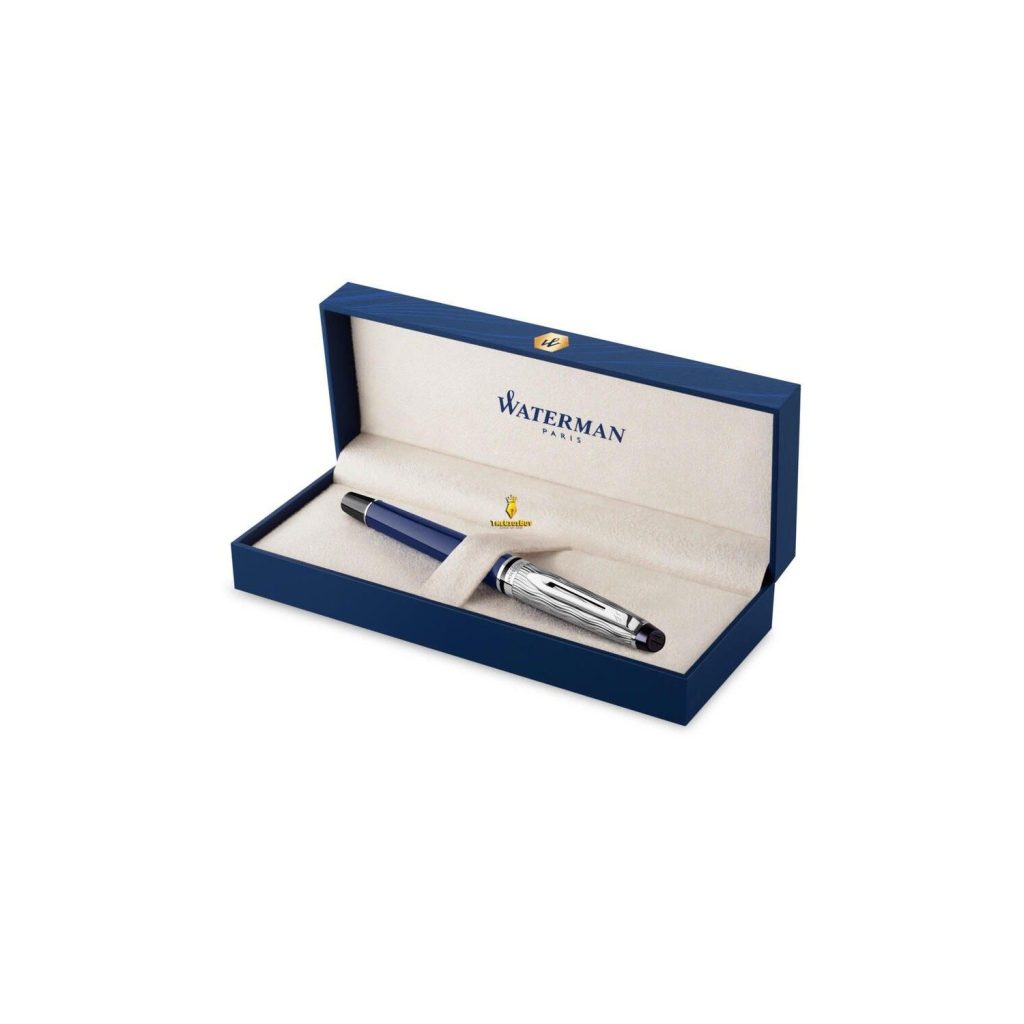 Đi kèm với chiếc bút là một chiếc hộp màu xanh dương rất đẹp mắt, thể hiện sự thông minh và lối sống hào hoa của người Pháp. Một đất nước đầy lãng mạn và giàu cảm xúc cũng là cội nguồn của những câu chuyện nổi tiếng trên thế giới. Tất cả từ bút cho đến hộp đều được sản xuất tại Pháp. Mỗi cây bút ký Waterman do Thế Giới Bút phân phối sẽ có một ruột bút được lắp sẳn vào trong thân bút, phiếu bảo hành 12 tháng và túi giấy sang trọng kèm theo.
