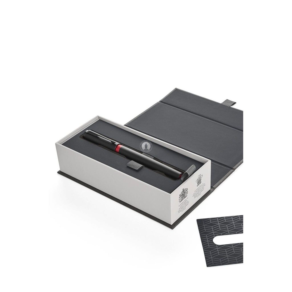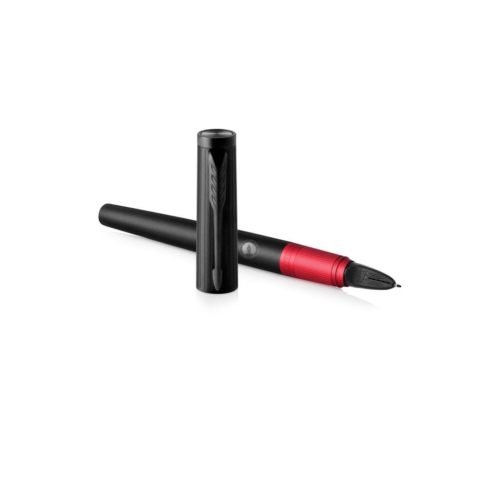 Ngòi viết Parker Ingenuity Deluxe Black Red PVD 5th 1972069 phủ sơn mài công nghệ PVD bạch kim và được sản xuất theo thế hệ thứ 5 của Parker với đầu viết chạm khắc biểu tượng của Parker. Ngòi bút với kiểu dáng hiện đại mang hình dáng công nghê tương lai. Công nghệ 5th sẽ cho các bạn cảm giác viết êm và tiện lợi với ruột bút không lem mực. Phần cầm bút cũng được phủ sơn mài đỏ rực đẹp mắt và ấn tượng. Có thể nói tổng thể đây là cây bút rất đẹp và đặc biệt.