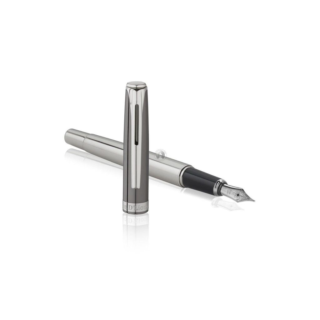 Bút máy Allan D’lious 5321FGY là mẫu mới nhất thuộc dòng 5321 bán rất chạy tại thị trường Việt Nam. Cấu tạo thân bút làm bằng thép không rỉ nguyên bản phủ chrome rất sang trọng và bắt mắt. Các chi tiết như khoen, đầu cap, cài bút cũng như phần nắp đấy được phủ platinum công nghệ sáng bóng và đẹp mắt.