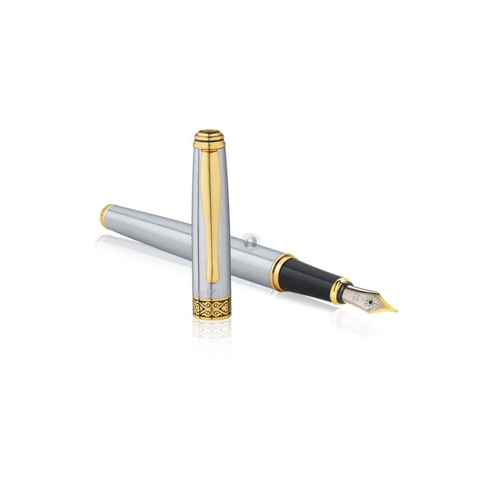 Bút máy Allan D’lious 6002FS là dòng sản phẩm mới nhất thuộc dòng 6002 cao cấp. Thân bút mực nước Allan D’lious 6002FS làm bằng thép không rỉ nguyên bản cao cấp rất sang trọng và bắt mắt. Các chi tiết như khoen, đầu cap, cài bút cũng như phần nắp đấy được phủ vàng công nghệ sáng bóng và đẹp mắt. Nổi bậc nhất là hoa vân của vòng khoen giữa thân bút Allan D’lious được tạo hình tinh xảo và nghệ thuật. Vừa mang tính nghệ thuật vừa mang tính truyền thống. Có thể nói cây bút này sở hữu một vẻ ngoài cứng cáp và rất chắc chắn.