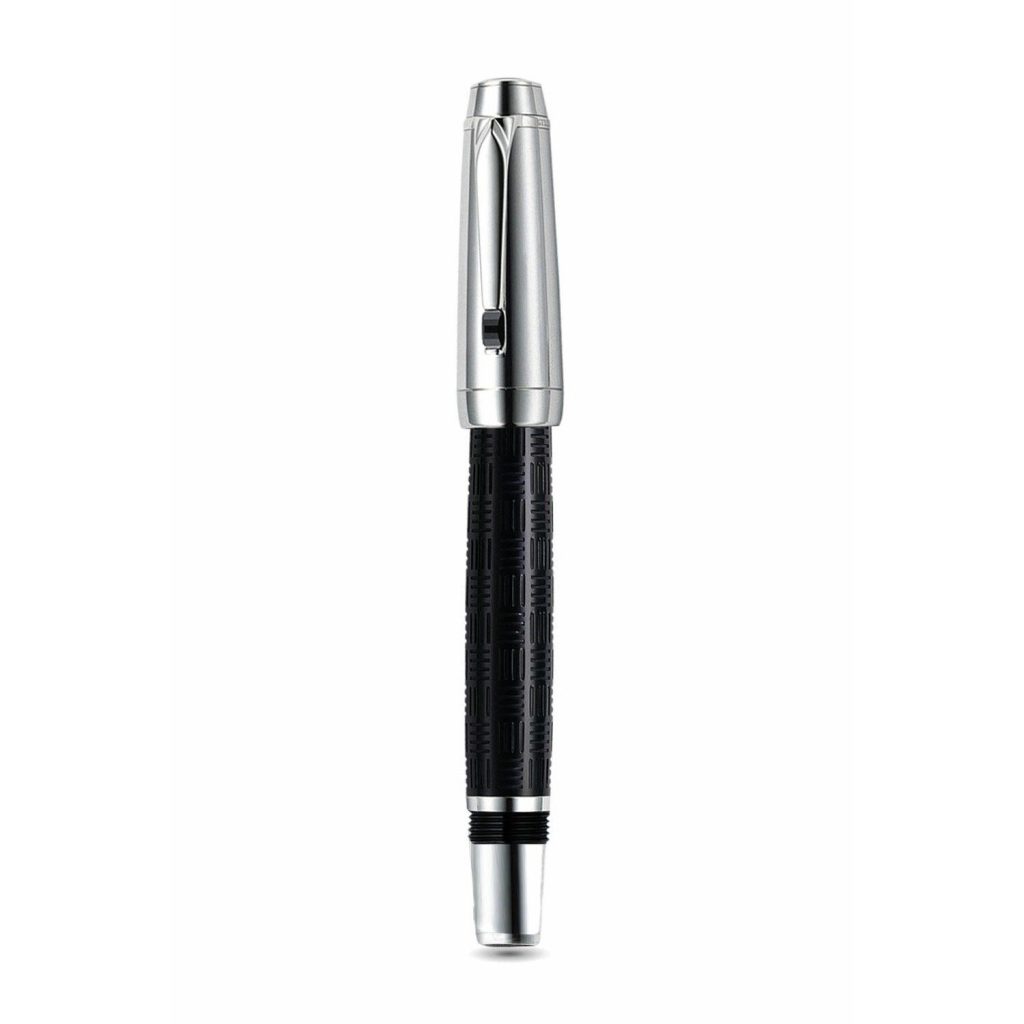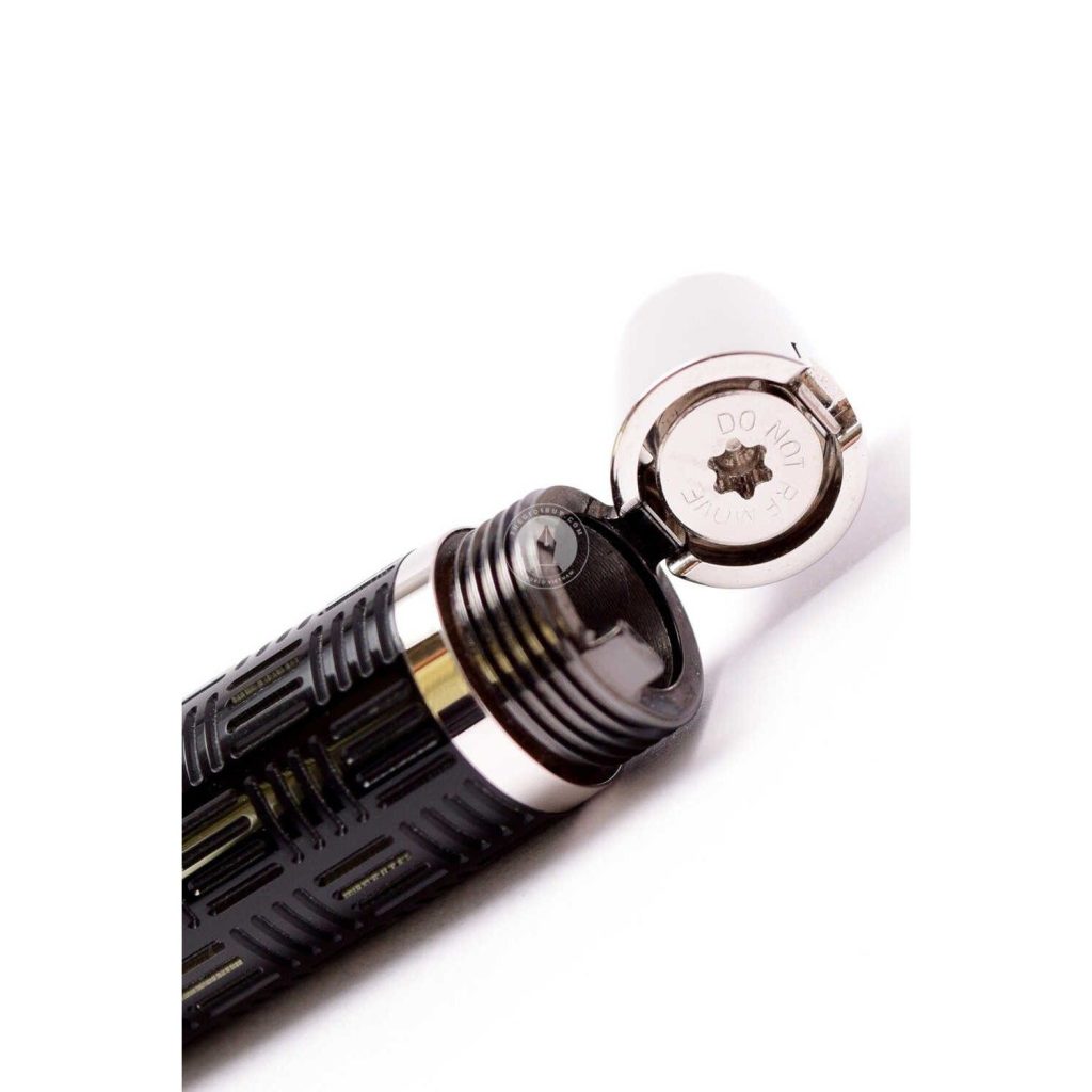 Được sản xuất tại Đức với chất liệu của bút ký này rất đáng chú ý thân bút được làm bằng nhựa quý màu đen, với hoa văn Guilloche sọc ngang dập chìm trên thân tạo nên một vẻ đẹp tinh tế và độc đáo. Điểm nhấn đặc biệt là đầu thanh cài được đính 1 viên đá quý tổng hợp tự nhiên màu đen. Viên đá này là một viên Synthetic Onyx-Coloured Gemstone, mang theo nhiều ý nghĩa phong thủy tích cực như tạo sự cân bằng, bình an và bổ trợ tinh thần.