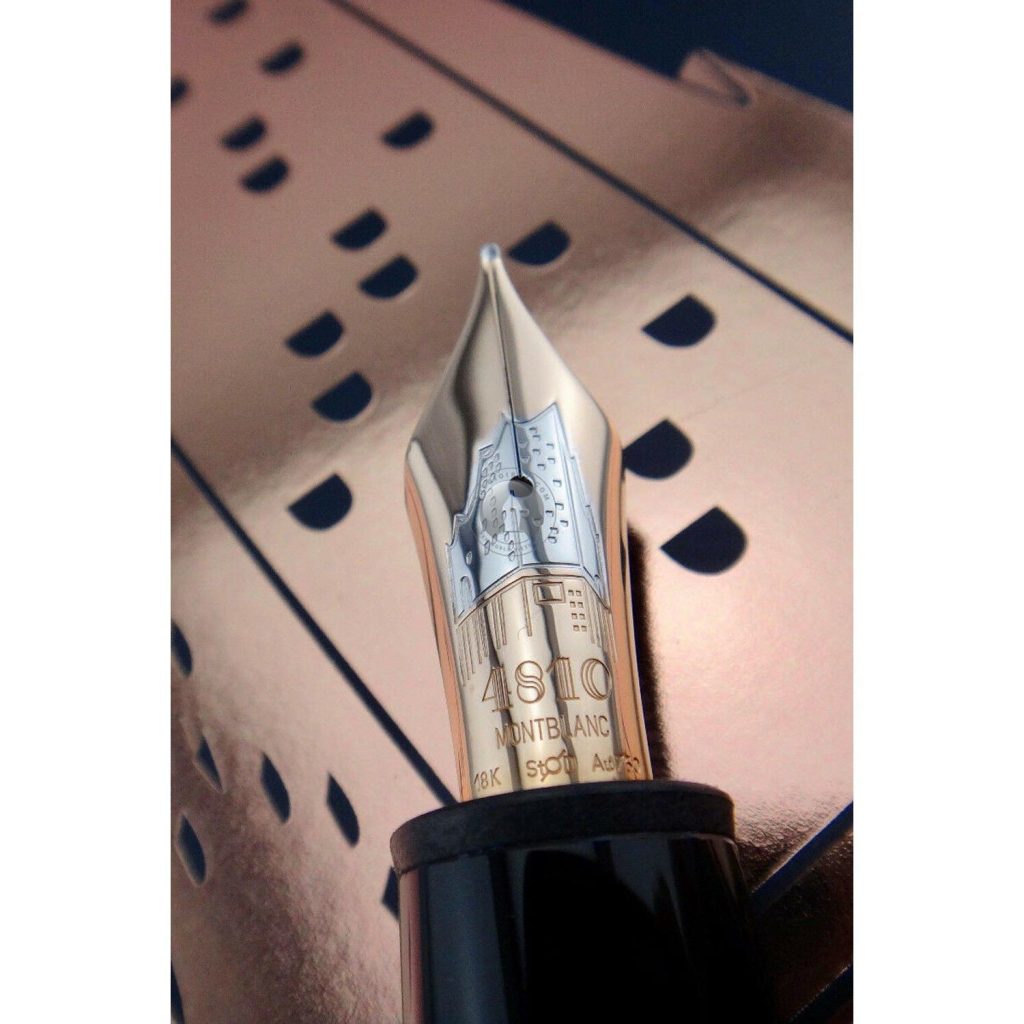 Chiếc nắp được chạm khắc tinh xảo đường viền của Elbphilharmonie phủ một lớp vàng hồng làm nổi bật thiết kế kiến trúc vĩ đại này. Bên cạnh đó ngòi bằng vàng hồng nguyên khối 18K đặc biệt cũng rất độc đáo với phác thảo của “Elphi”. Phiên bản bút đặc biệt này sử dụng hệ thống bơm mực piston.