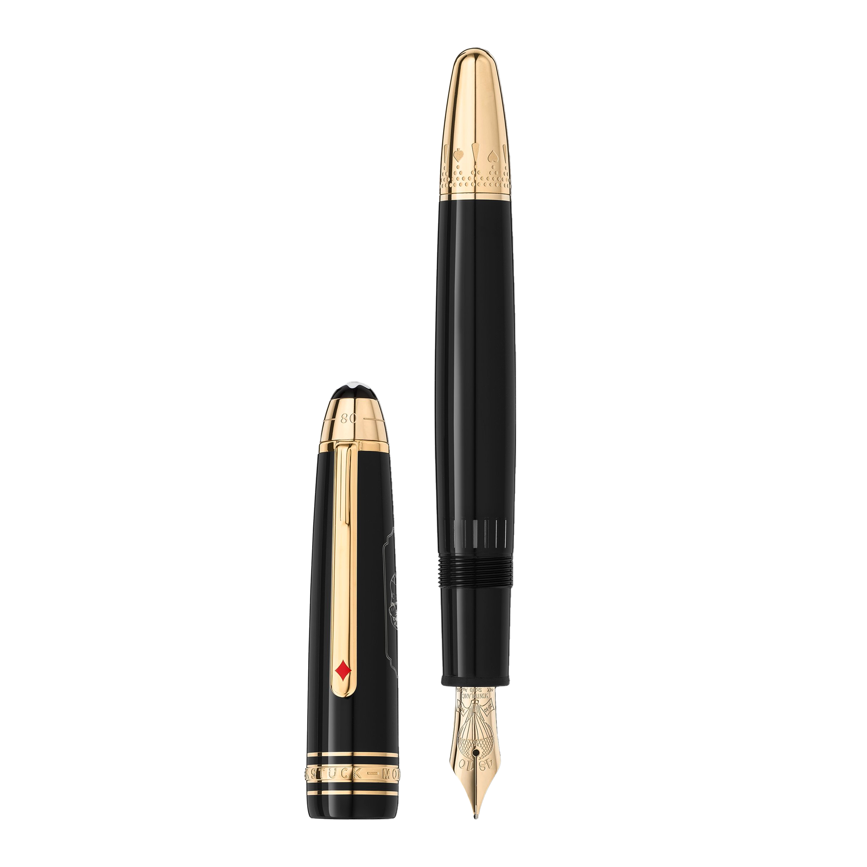 Cài bút được phủ sơn mài đỏ hình kim cương (diamond suit) – tượng trưng cho quyết tâm, rủi ro và giá trị chiến lược trong mọi quyết định lớn của một nhà lãnh đạo.