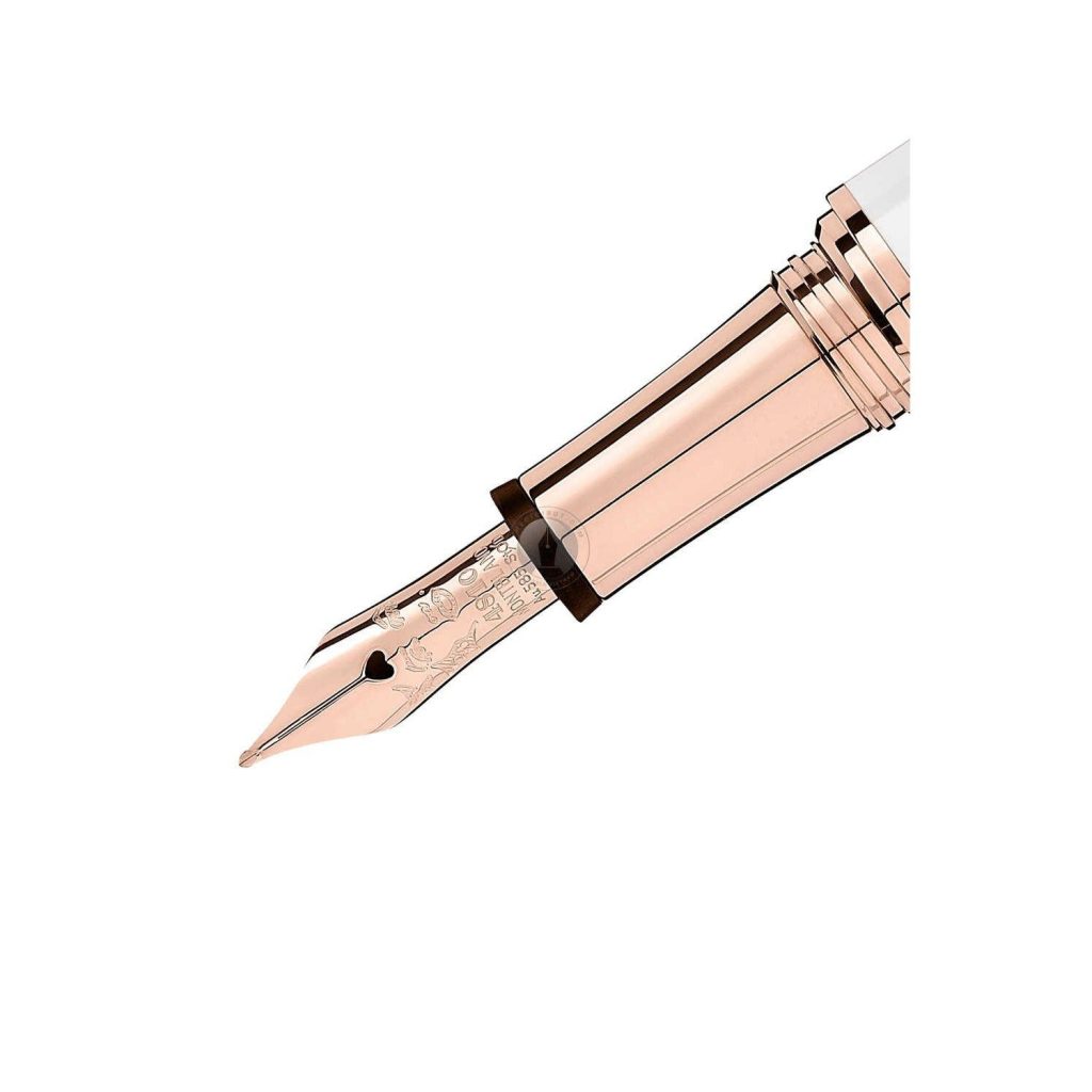 Ngòi bút Montblanc Muses Marilyn Monroe được làm bằng vàng 14 karat với chân dung của nữ diễn viên được chạm khắc trên đó. Lỗ tròn truyền thống trên ngòi bút được thiết kế lại thành hình dáng trái tim với đường xẻ rảnh rất nữ tính và hài hoà.