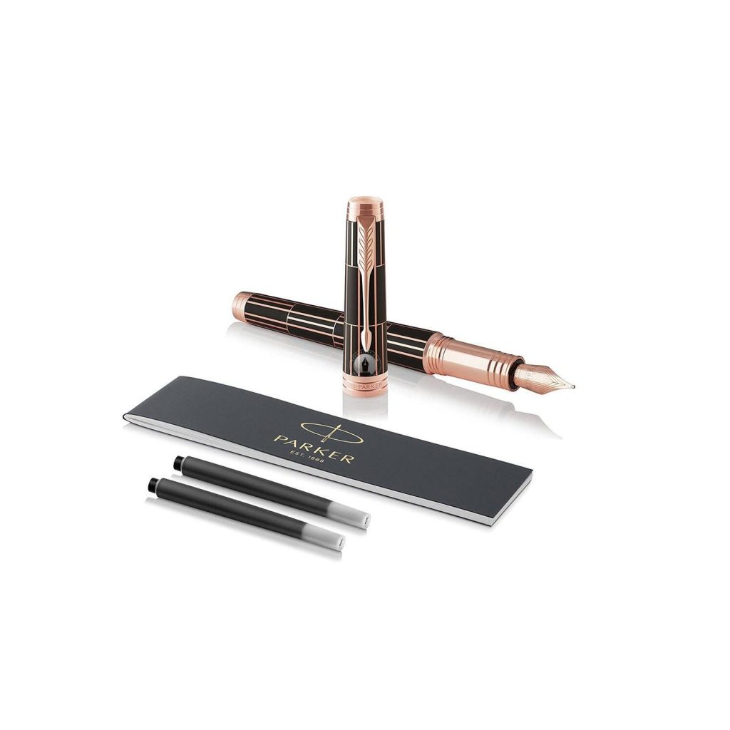 Bút máy Parker Premier 2017 Luxury Brown PGT Fountain Pen 1931397 là chiếc bút thuộc dòng Premier Luxury. Parker Premier được hãng cho ra mắt vào năm 2009 với phong cách hoa văn độc đáo và đạt tiêu chuẩn cho thế kỷ 21, rất sang trọng và quý phái. Parker Premier là sự kết hợp giữa phong cách kiến trúc hiện đại và nghệ thuật kim hoàn trên vật liệu quý được tạo ra bởi tay nghề khéo léo của các người thợ lành nghề. Parker Premier thực sự mang phong cách đương đại sâu sắc. Đây là dòng sản phẩm được thiết kế bởi nhà thiết kế nổi tiếng người Ý Beatrice Fontana, người đã thiết kế cho các thương hiệu Fendy, Versace và Calvin Klein.