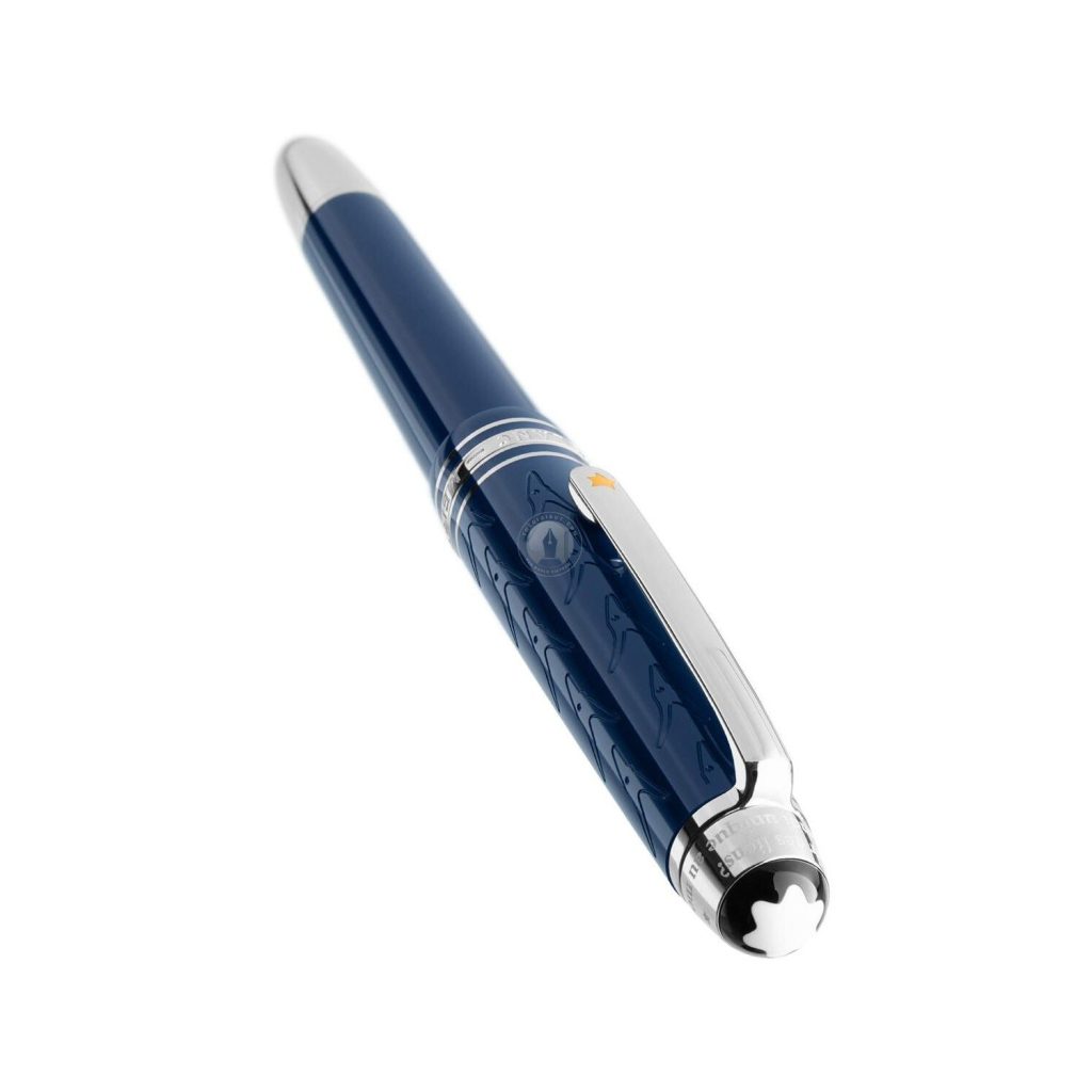 Montblanc Meisterstuck Le Petit Prince Classique Rollerball 118057 được làm bằng nhựa resin quý màu xanh đậm giống như bầu trời xanh thẳm của vũ trụ xung quanh hoàng tử bé. Đây là phiên bản đầu tiên trong bộ sưu tập Le Petit Prince của hãng Montblanc. Nắp bút dạ bi Montblanc Le Petit Prince được trang trí với hoa văn mặt cáo với các chi tiết như cài bút được mạ bạch kim tương phản với màu xanh đậm rất sang trọng. Cây bút này mang một màu xanh thẳm rất cuốn hút người dùng. Viết dạ bi Meisterstuck Le Petit Prince Classique rất thích hợp với những khách hàng mệnh mộc và kim. Chiếc bút được đựng trong hộp được làm mới lại với những chi tiết hoàng tử bé và con cáo được in trên đó. Bút dạ bi Montblanc 118057 có cơ chế mở nắp để viết và thay ruột bi khi hết mực và được bảo hành chính hãng 3 năm.