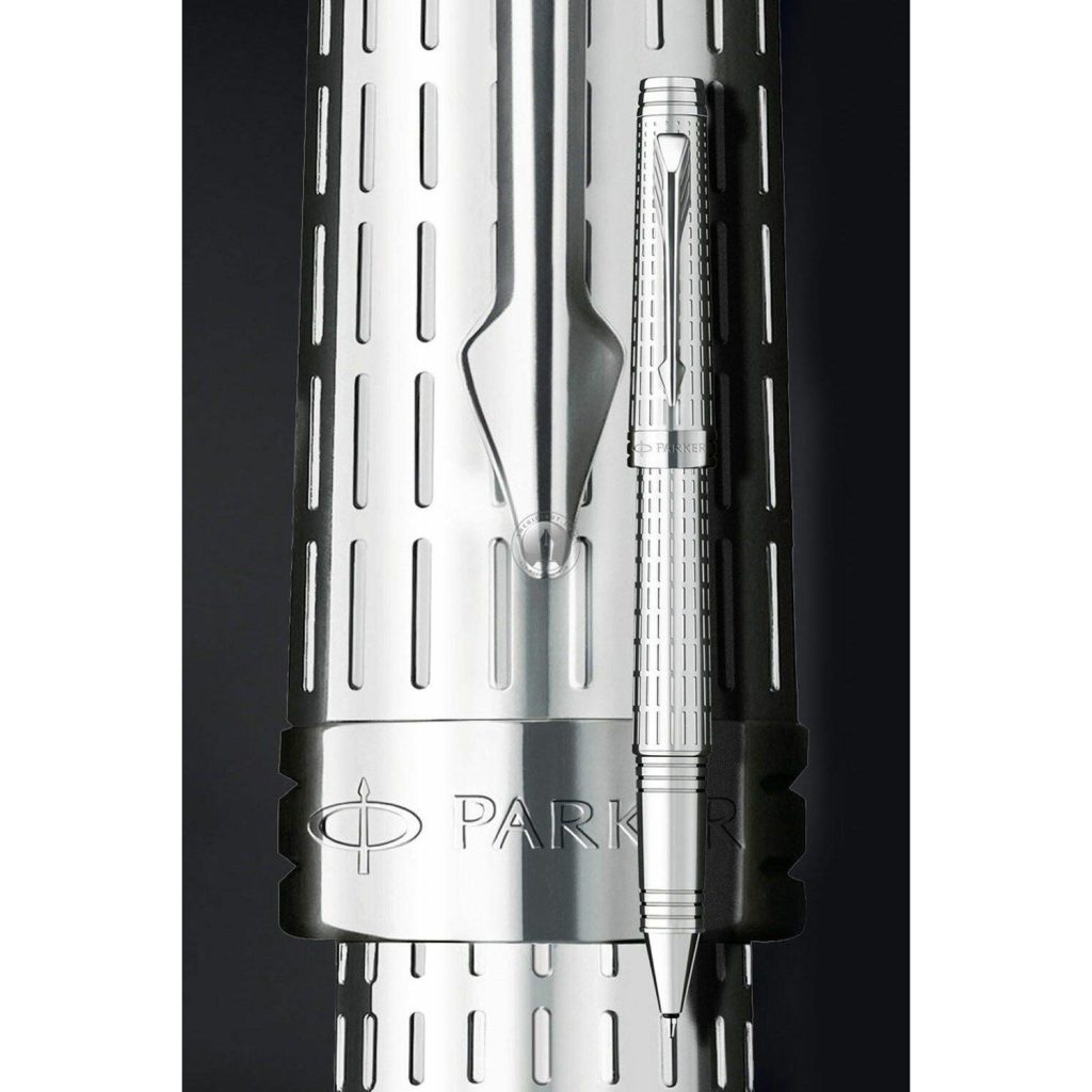Thiết kế độc đáo với những hoa văn kẻ ô trên thân cây bút lấy ý tưởng từ những tòa nhà đô thị hiện đại. Đặc biệt là biểu tượng mũi tên của chiếc viết Parker Premier chạm khắc độc đáo cùng lớp kim loại quý trên thân cây bút đã tạo nên một kiệt tác nghệ thuật độc nhất vô nhị. Parker  Premier bao gồm  4 dòng  chínhh là  cơ  bản  (core), đơn sắc (monochrome), 2 tone (custom) và  cao  cấp  (luxury).  Những mẫu viết Parker Premier chính hãng được Thế  Giới  Bút  – đại  diện hãng Parker Việt Nam phân phối các bạn xem ở bên dưới.