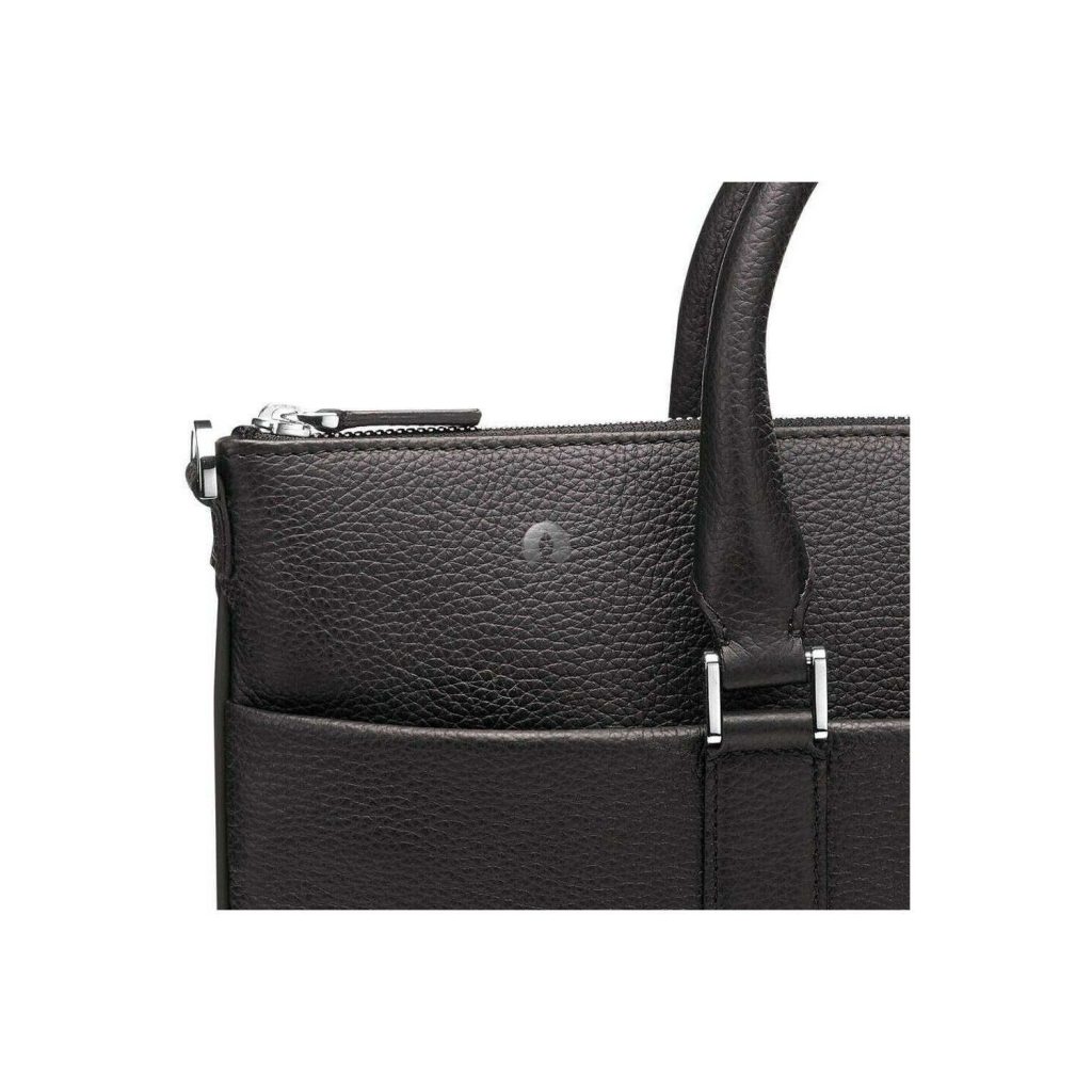 Nếu xét về tính hiệu quả về sắp xếp hợp lý thì không nơi nào bằng người Đức. Sự hợp lý này thể hiện rõ trong chiếc cặp Montblanc Bag 118732 tinh tế này. Chiếc ví được cắt từ chất liệu da bê hạt mềm nguyên miếng, nó được tách lớp, da đã nhuộm qua và có in hoa văn sần mờ. Các phụ kiện như khóa đóng mở tông màu bạc được mạ crom siêu bền, dập logo chữ và biểu tượng đỉnh núi tuyết. Lớp lót Jacquard với thương hiệu Montblanc được in chìm chống giả.