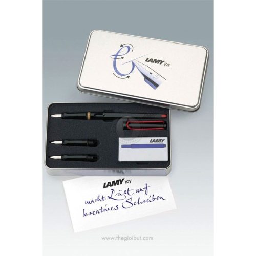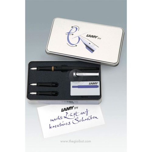 Bộ bút mực cao cấp viết Joy thích hợp dùng làm quà tặng cho người thân, bạn bè hay các đối tác. Bộ sản phẩm bao gồm 1 cây bút mực Joy và 2 ngòi thay thế có kích cỡ lần lượt là 1.5mm và 1.9mm. Sản phẩm dành cho những ai đam mê viết lách và muốn luyện chữ đẹp. Bộ bút máy cao cấp viết Lamy Joy được đặt trong hộp thiếc sang trọng và chắc chắn. Bên trong có lớp lót bằng mút xốp giúp bảo vệ từng chi tiết của bộ sản phẩm tránh trầy xước và va đập. Một số mẫu bút do Lamy Việt Nam cung cấp ở bên dưới.