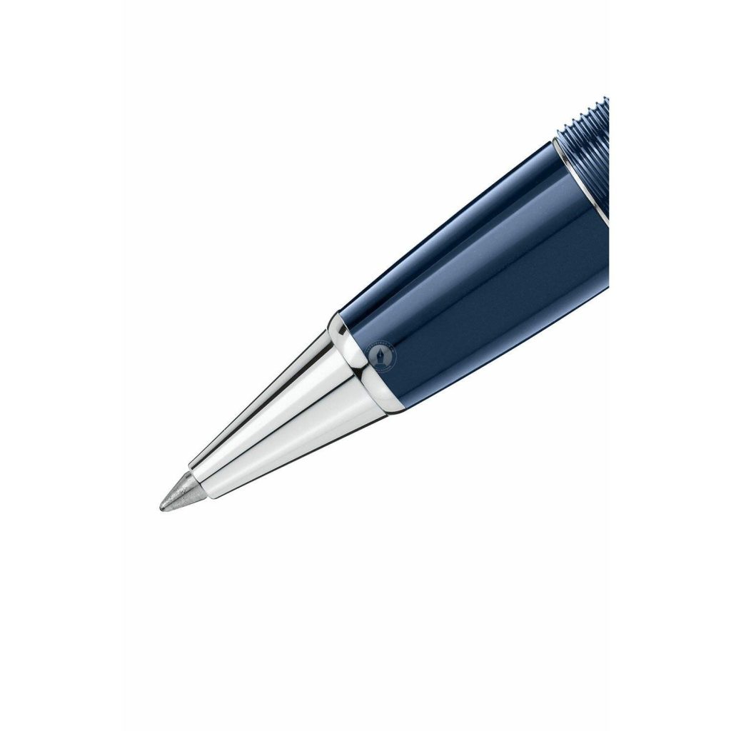 Bút dạ bi Montblanc Meisterstuck Around The World LeGrand Rollerball thuộc dòng Meisterstuck với mã số quốc tế là Montblanc MB126201. Được sản xuất tại Đức với thân bút làm bằng nhựa quý resin màu xanh biển đậm sang trọng. Cài và khoen được mạ platinum sáng bóng, đẳng cấp. Logo màu trắng có hình hoa tuyết 6 cánh đặc trưng trên đỉnh nắp bút. Cơ chế hoạt động là mở nắp ra để viết. Bình mực xanh hoặc đen tùy thuộc vào nhu cầu của người sử dụng, bút sử dụng cơ chế bơm mực. Là dòng bút bán chạy nhất hiện nay của hãng Montblanc.