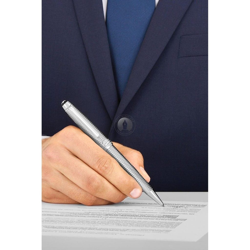 Bút bi Montblanc Meisterstuck Geometry Solitaire Midsize Ballpoint Pen 118099 là một trong những phiên bản khá ấn tượng của thương hiệu Montblanc. Thiết kế cổ điển với hoa văn hình học ba chiều tinh xảo. Hiệu ứng quang học cùng tông màu bạch kim và ba vòng mạ bạch kim chạm nổi lôi cuốn. Bút được sản xuất tại Đức với cơ chế xoay nắp ngòi lò ra để viết. Bút bi Montblanc 118099 sử dụng ruột bi Montblanc để thay thế khi hết mực. Màu mực mặc định theo tiêu chuẩn của hãng là màu đen. Vì vậy, phần lớn các khách hàng của Thế Giới Bút thường mua thêm ruột bút bi Montblanc màu xanh để tặng kèm hoặc thay vào khi mua bút.