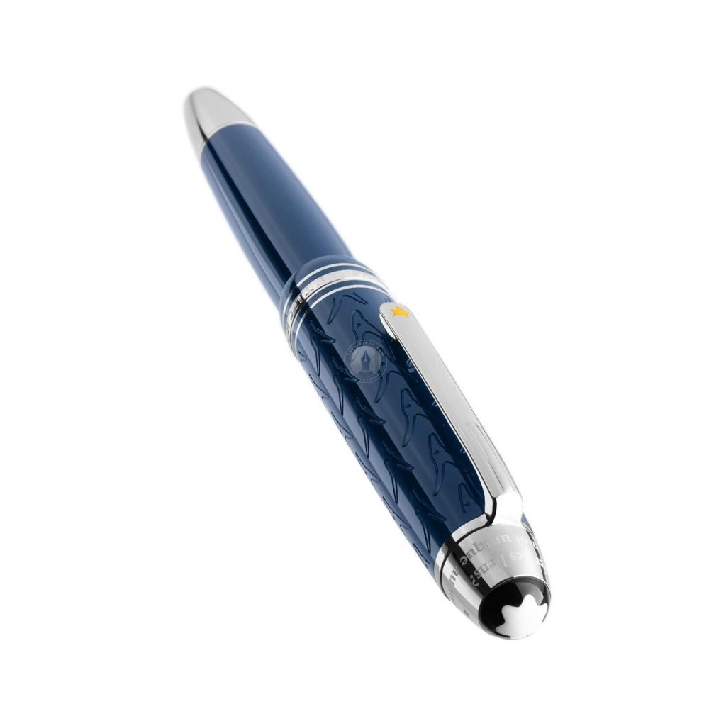 Chiếc bút dạ bi Montblanc Meisterstuck Le Petit Prince Legrand Classique Rollerball 118053 được làm bằng nhựa resin quý màu xanh đậm giống như bầu trời xanh thẳm của vũ trụ xung quanh hoàng tử bé. Đây là phiên bản đầu tiên trong bộ sưu tập Le Petit Prince của hãng Montblanc. Nắp bút dạ bi Montblanc Le Petit Prince Legrand được trang trí với hoa văn mặt cáo với các chi tiết như cài bút được mạ bạch kim tương phản với màu xanh đậm rất sang trọng. Cây bút này mang một màu xanh thẳm rất cuốn hút người dùng. Viết dạ bi Meisterstuck Le Petit Prince Classique rất thích hợp với những khách hàng mệnh mộc và kim. Chiếc bút được đựng trong hộp được làm mới lại với những chi tiết hoàng tử bé và con cáo được in trên đó. Bút dạ bi Montblanc 118053 có cơ chế mở nắp để viết và thay ruột bi khi hết mực và được bảo hành chính hãng 3 năm.