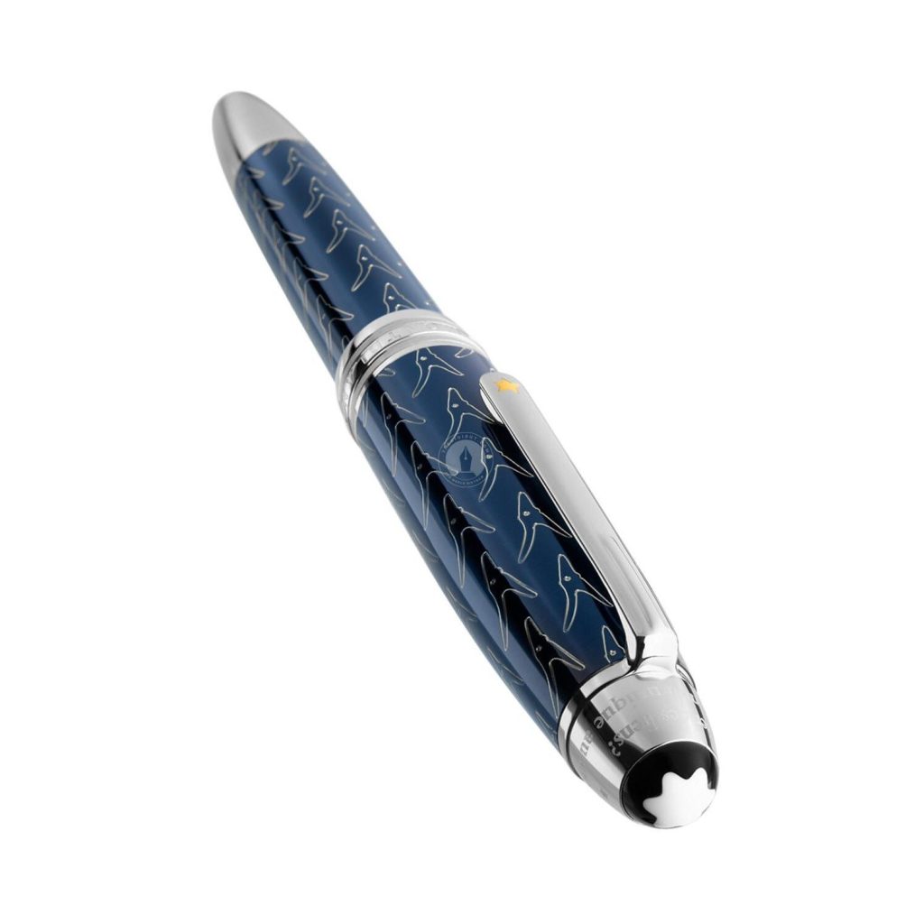 Những hoạ tiết như sự kiện Hoàng tử bé nói với phi công của bạn ấy là chúng ta có thể nghe thấy tiếng cười của hoàng tử bất cứ lúc nào chỉ đơn giản bằng cách nhìn vào những ngôi sao và ghi nhớ. Montblanc đã thể hiện điều này qua hình tượng ngôi sao vàng tô điểm cho cài bút trên các dòng sản phẩm. Hình ảnh tinh tế và bất tử là hình tượng Hoàng tử bé cùng với người bạn của mình là con cáo được khắc thủ công trên ngòi bút máy mạ 14K phủ rhodium.