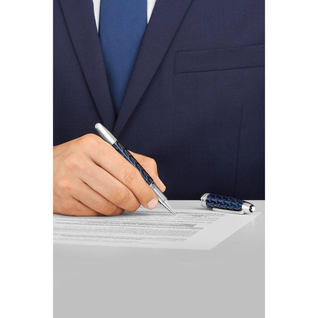 Cây bút này mang một màu xanh thẳm rất cuốn hút người dùng. Viết dạ bi Meisterstuck Le Petit Prince Solitaire LeGrand Rollerball 118066 rất thích hợp với những khách hàng mệnh mộc và kim. Chiếc bút được đựng trong hộp được làm mới lại với những chi tiết hoàng tử bé và con cáo được in trên đó. Bút dạ bi Montblanc 118066 có cơ chế mở nắp để viết và thay ruột bi khi hết mực và được bảo hành chính hãng 3 năm.