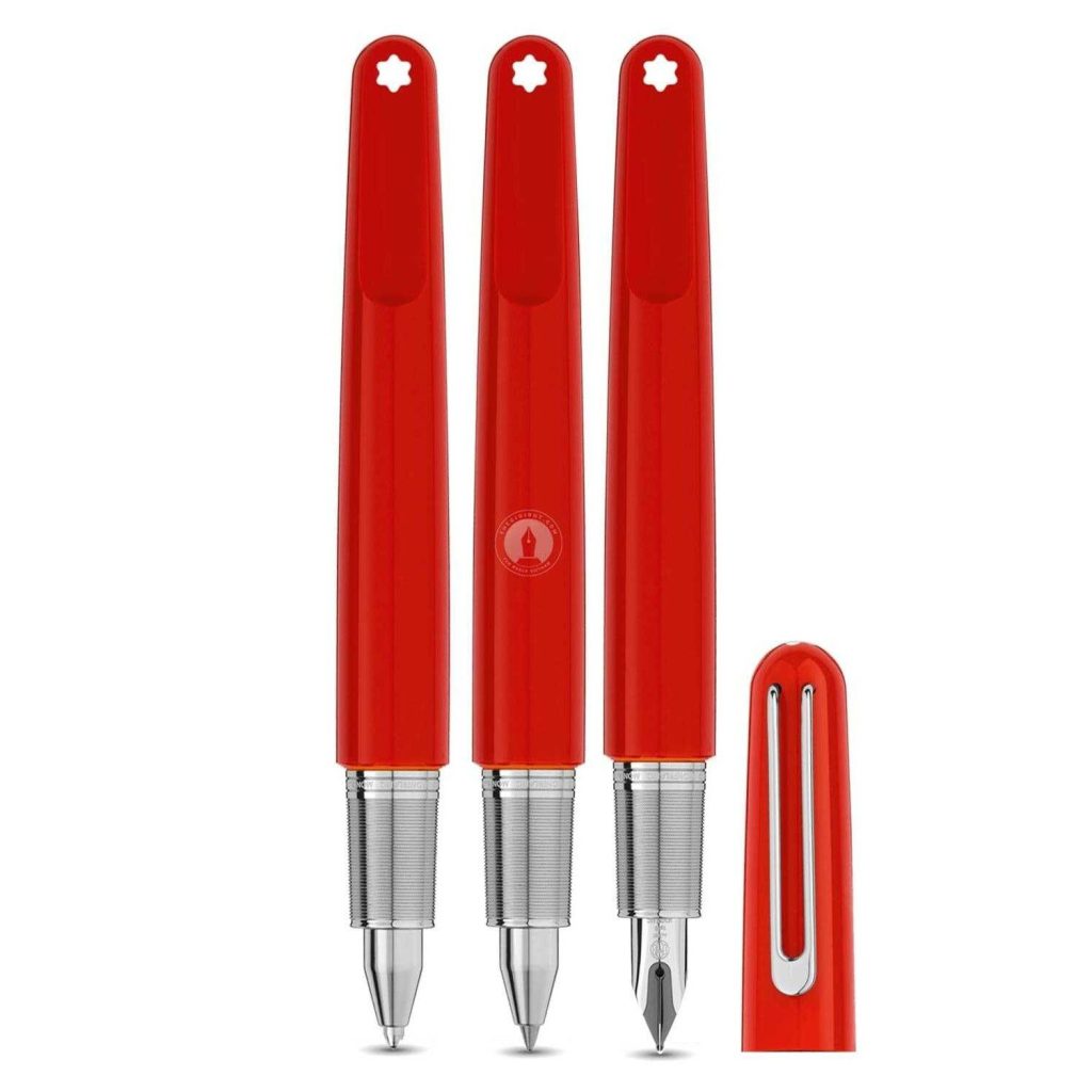 Hình dạng độc đáo của cây bút, bao gồm một phần bằng phẳng trên thân bút là đã gây chú ý ngay lập tức so với cây bút tròn thông thường. Việc sử dụng nam châm trong cơ chế đóng nắp tự động cho phép nắp bút được đậy vào thân một cách trơn tru và chính xác. Logo Montblanc màu trắng được hàn siêu âm với phần khuyết tạo thành một mặt phẳng láng mượt không gợn sóng. Montblanc M Red được sản xuất nhằm gây quỹ ủng hộ người nhiễm HIV trên toàn cầu.