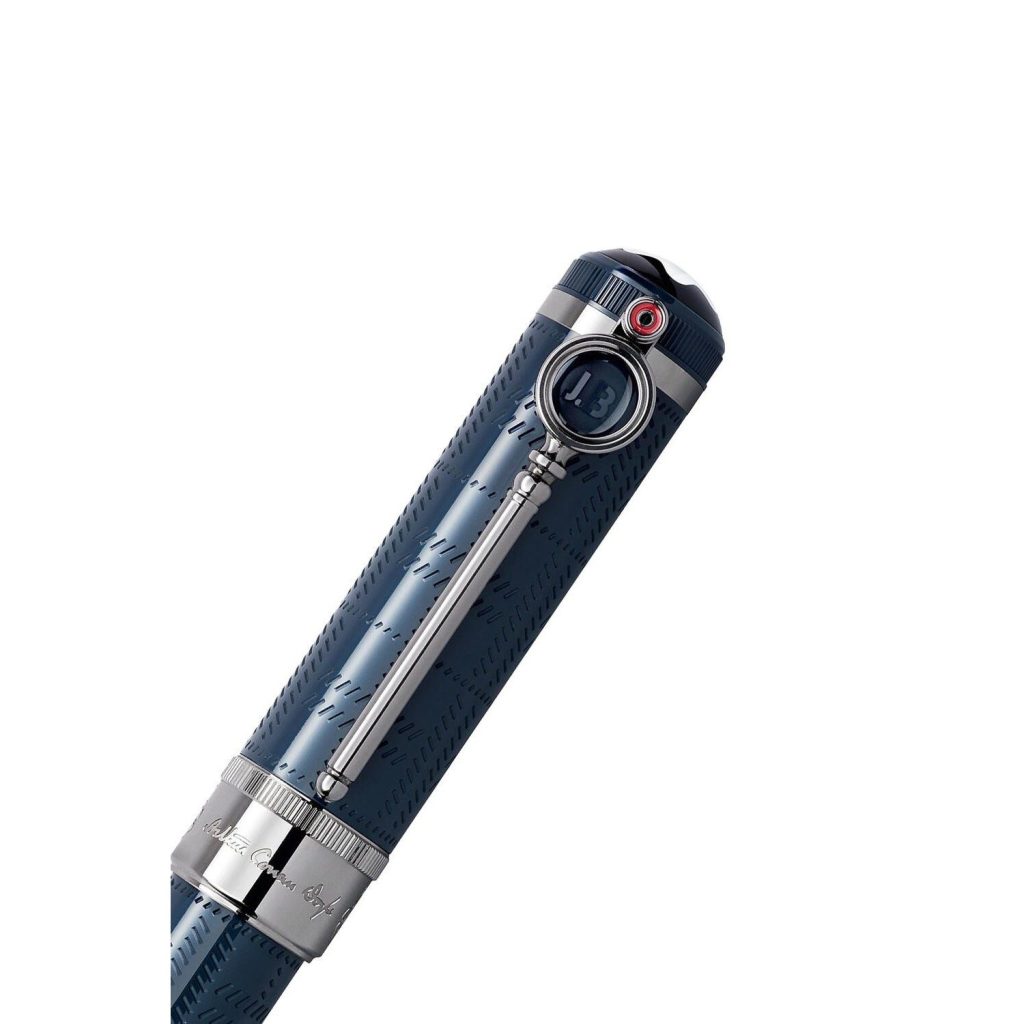 Phần cài bút Montblanc Sir Arthur Conan Doyle Limited Edition là chi tiết đặc biệt có hình dạng của một chiếc kính lúp mà Doyle đã sử dụng trong thời gian làm bác sĩ nhãn khoa. Nó được làm bằng chất liệu PVD với dòng chữ “JB” được khắc bên dưới nhằm tỏ lòng kính trọng đối với Joseph Bell. Joseph Bell là thần tượng của Sherlock Holmes trong các tác phẩm.