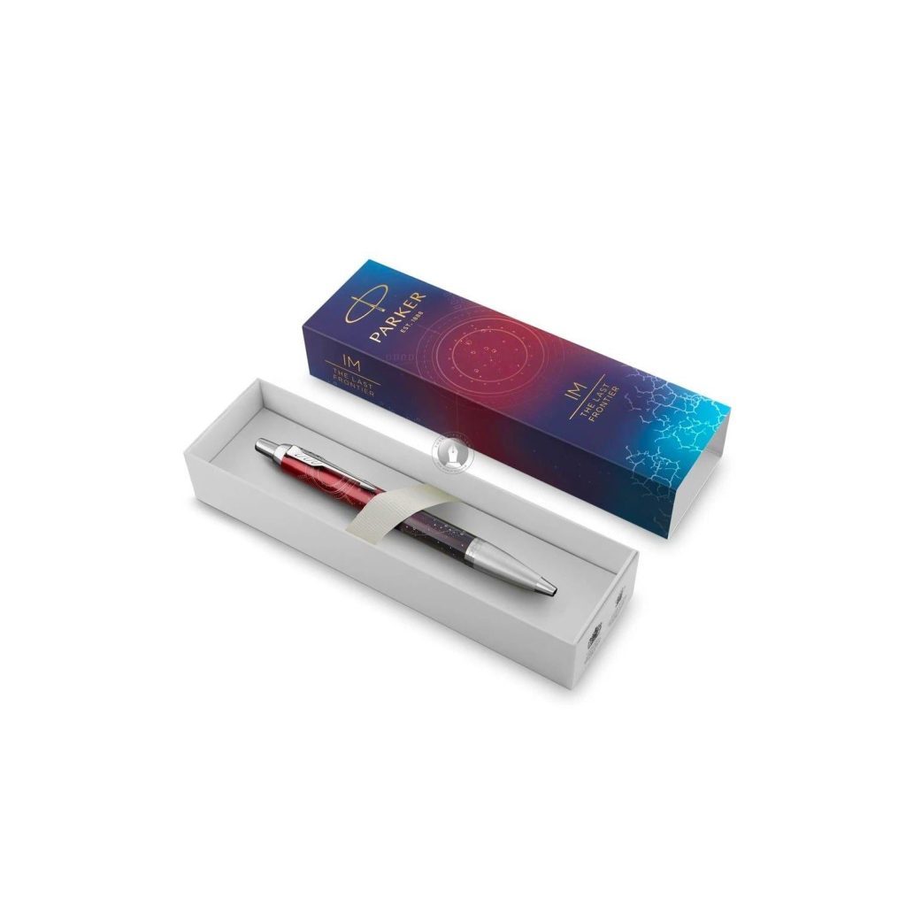 Bút bi bấm Parker IM Special Edition Portal Red Ballpoint Pen 2152998 có thiết kế lấy cảm hứng từ vũ trụ vô biên bao quanh không gian chúng ta. Thân bút Parker IM The Last Frontier Portal Red làm bằng thép không rỉ. Điểm nổi bậc nhất là nắp và thân phủ sơn mài màu đen từ đỏ đến nửa đêm, được tỉa chrome và chạm khắc họa tiết công phu thể hiện sự tưởng tượng vô biên giúp chúng ta đến với các vì sao. Bộ sưu tập phản ánh kỹ thuật thủ công viết lách lâu đời của Parker, bền vững cho đến ngày nay và. vẫn là biểu tượng của chất lượng và sự kiên cường thực sự.
