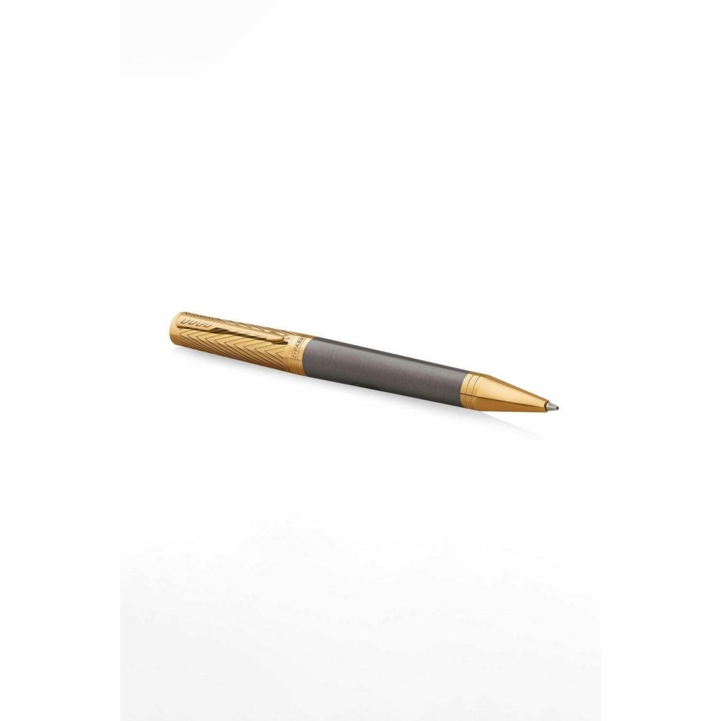 Đầu tiên là phần nắp được thiết kế với cảm hứng từ họa tiết chevron hình mũi tên hướng lên trên, biểu thị tư duy cầu tiến và tượng trưng cho thái độ tiên phong của George Parker. Toàn bộ chúng được phủ vàng trên nền thép không rỉ đối với dòng Duofold, Sonnet và vàng cộng nghệ PVD đối với dòng IM và Ingenuity. Các chi tiết khác như cài, vòng ring, khoen đều được phủ vàng cùng tông màu rất ấn tượng và đẹp mắt.