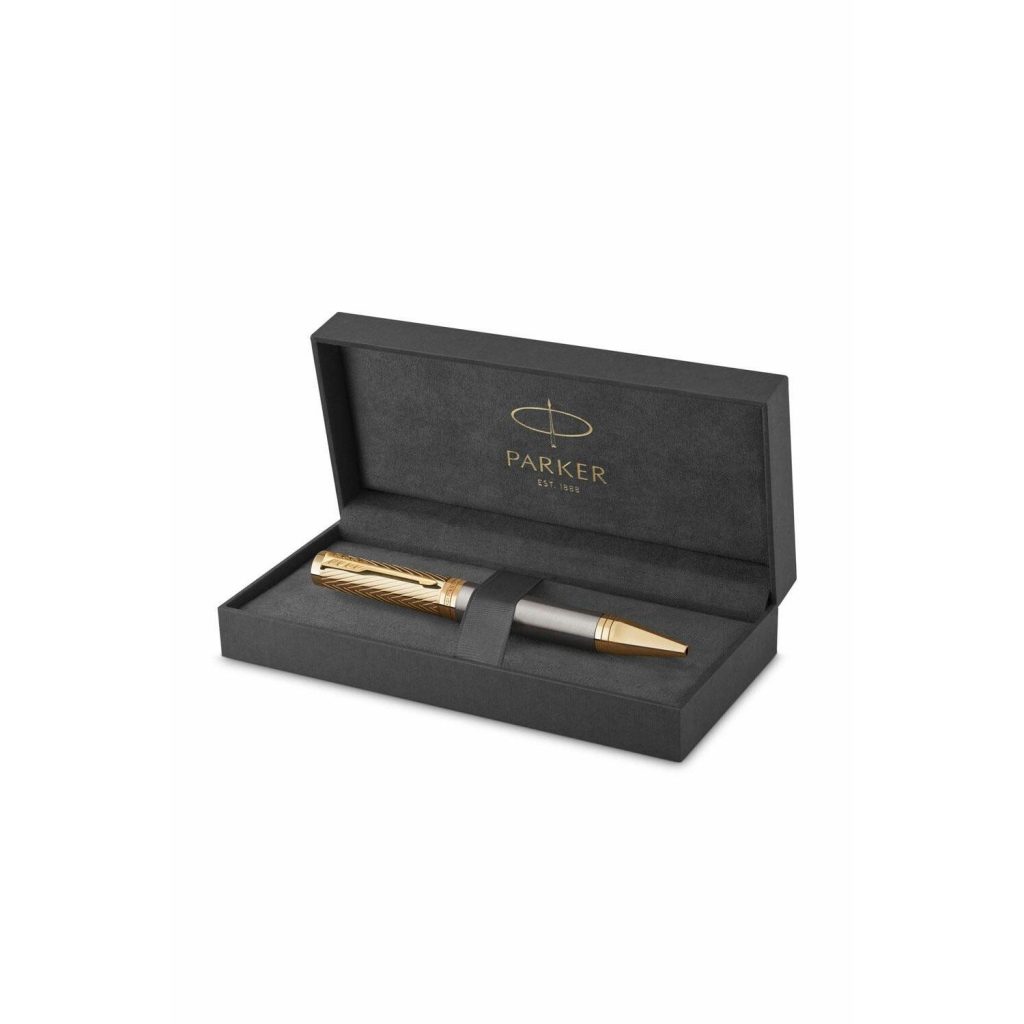 Bút bi Parker Ingenuity Pioneers Ballpoint Pen 2200952 là phiên bản cao cấp trong bộ sưu tập Parker Pioneers vừa được hãng giới thiệu và cho ra mắt vào đầu năm 2024. Parker Pioneers được sản xuất tại Pháp với số lượng giới hạn. Điểm nhấn đặc biệt nhất là phần nắp bút phủ vàng với họa tiết chevron hình mũi tên hướng lên trên, biểu thị tư duy cầu tiến và tượng trưng cho thái độ tiên phong của George Parker. Cùng với thân màu xám lấy cảm hứng từ màu đặc trưng của thương hiệu Parker là chiếc hộp được thiết kế riêng biệt và đồng nhất.