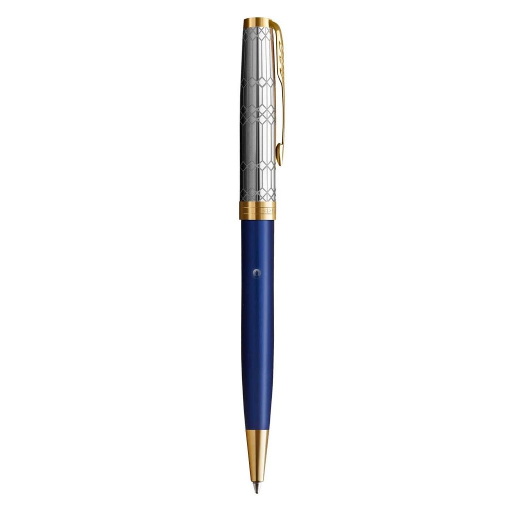 Parker Sonnet Special Edition Jubilee Ballpoint Pen 2175075 có thân được sơn mài cao cấp màu xanh sapphire được lấy cảm hứng từ những viên đá quý của vương miện hoàng gia của vua St.Edward đi cùng với nắp bằng bạc nguyên khối 925 được điêu khắc tinh xảo bằng họa tiết hoàng gia, mang đến một vẻ ngoài vương giả rõ rệt. Các chi tiết phụ kiện như khoen, cài bút tất cả đều được mạ vàng 23K đầy sang trọng.
