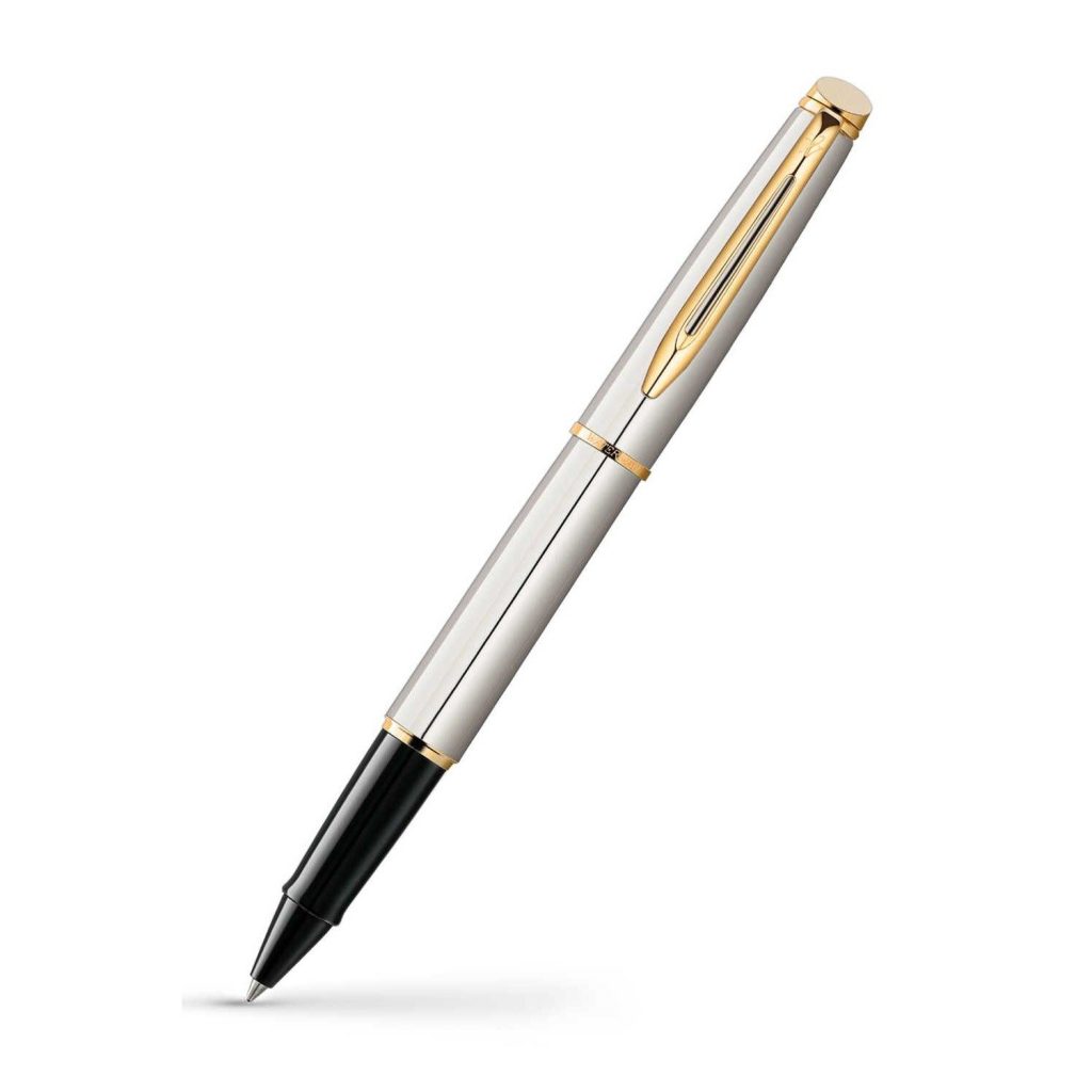 Thân bút dạ bi Waterman được làm bằng thép không rỉ kết hợp việc đánh xướt tạo văn bề mặt rất thời gian và cao cấp. Các thành phần khác của chiếc bút waterman như khoen, phần đỉnh nắp, đấy của thân được mạ vàng 23K cho độ sáng sắc xảo tuyệt vời. Cài của chiếc bút Waterman Hemisphere Rollerball cũng được phủ vàng 23K với hình dáng truyền thống từ hãng Waterman.