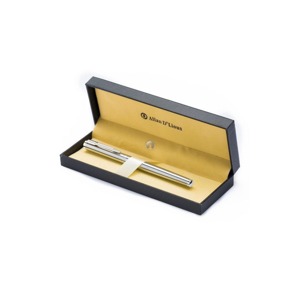 Bút máy Allan D’lious 0302FS là chiếc bút ký thuộc dòng 0302 bán rất chạy tại thị trường Việt Nam. Cấu tạo thân bút làm bằng thép không rỉ nguyên bản cao cấp rất sang trọng và bắt mắt. Các chi tiết như khoen, đầu cap, cài bút cũng như phần nắp đấy được phủ vàng công nghệ sáng bóng và đẹp mắt.
