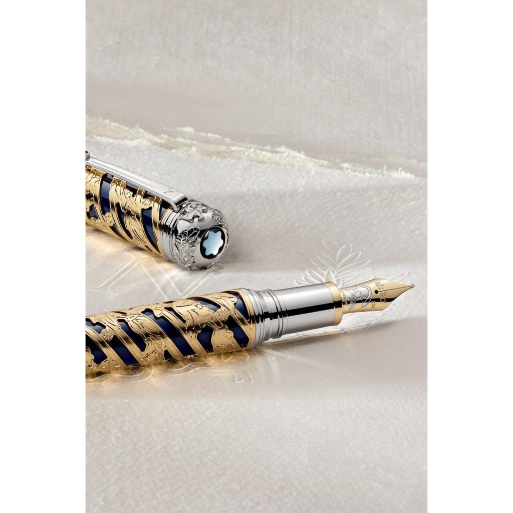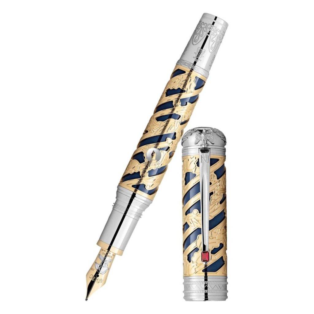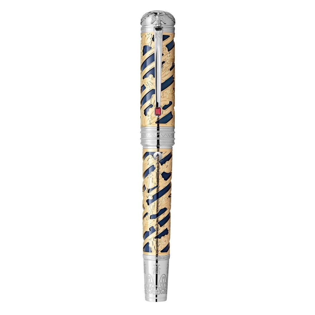 Chi tiết thiết kế khung xương cho thấy là sồi từ đồng phục của Napoleon đại diện cho sức mạnh và tuổi thọ, trong khi lá ô-liu được lấy từ đồng phục của học viện Pháp, như một biểu tượng của chiến thắng, trí tuệ và lòng chung thủy. Biểu tượng logo Montblanc được làm bằng xà cừ. Ngòi được chế tác thủ công bằng vàng nguyên khối 18K mạ một lớp ruthenium đi cùng với chân dung Napoleon và chiếc xe đạp đặc biệt của ông được khắc tinh xảo.