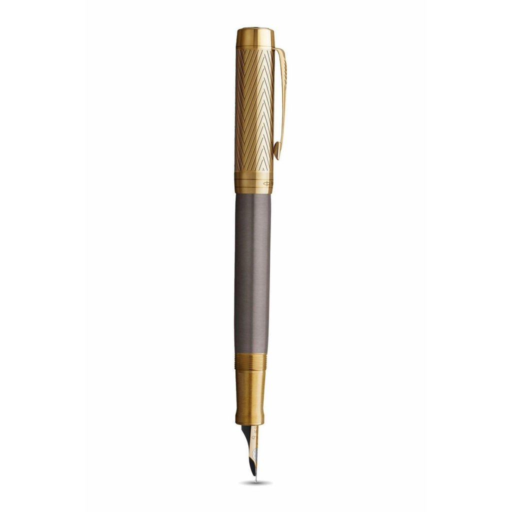Điểm nhấn đặc biệt nhất là phần nắp bút phủ vàng 23k với họa tiết chevron hình mũi tên hướng lên trên, biểu thị tư duy cầu tiến và tượng trưng cho thái độ tiên phong của George Parker. Cùng với thân màu xám lấy cảm hứng từ màu đặc trưng của thương hiệu Parker là chiếc hộp được thiết kế riêng biệt và đồng nhất.