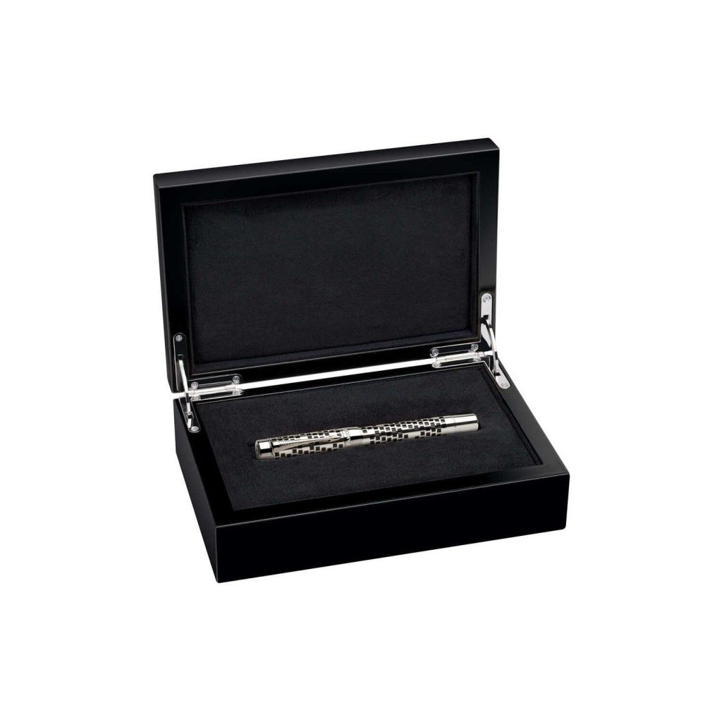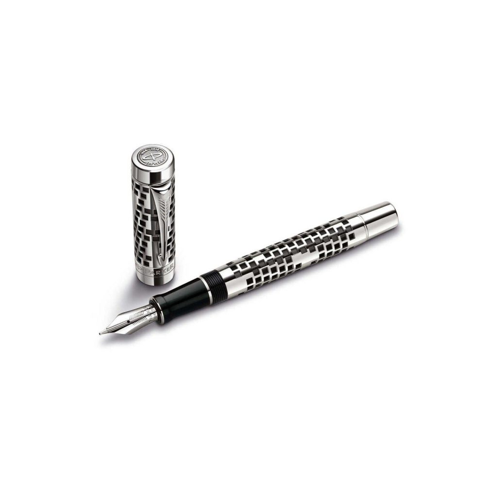 Thân bút: thân bút và nắp bút được chế tác từ nhựa Resin màu đen quý hiếm và được bọc trong lớp vỏ bằng bạc được chế tác cầu kỳ với hoạ tiết Cécile lừng danh của Parker trong những thập niên 1970s. Đỉnh nắp bút được trang trí logo Parker 125 năm bằng bạc rắn.