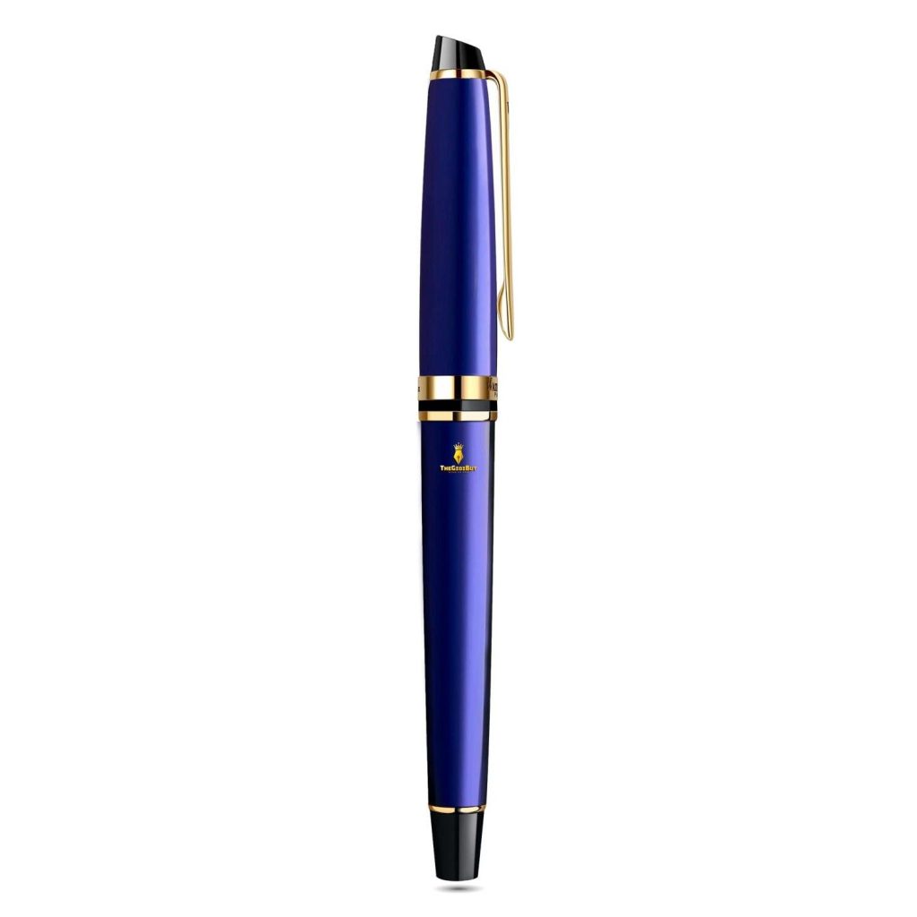 Các bộ phận như khoen bút, cài bút được mạ vàng sáng bóng cho độ bền ưu việt. Kết hợp với màu xanh đậm của lớp sơn mài của thân bút tạo nên sự mạnh mẽ, đương đại và sang trọng vượt thời gian. Bút máy Waterman Expert cho bạn khám phá cảm giác thú vị của bút ký với phong cách sành điệu, làm đẹp nét chữ, đồng thời mang đến trải nghiệm viết sang trọng và độc đáo. Ngòi bút đc làm bằng vàng nguyên khối 18K phủ bạch kim phối vàng làm tăng độ bền bỉ va mượt mà khi viết.