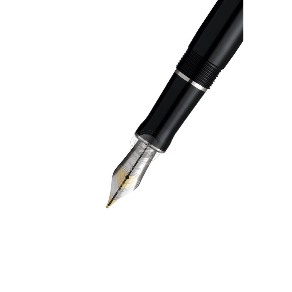 Ngòi bút: Ngòi bút được chế tác bằng vàng rắn đóng triện 18K – 750, và được trang trí bằng các hoạ tiết nổi bật mạ rhodium trắng sáng, ngòi bút được gia công cầu kỳ với dòng chảy mực luôn bảo đảm độ chính xác cao trong từng nét chữ.