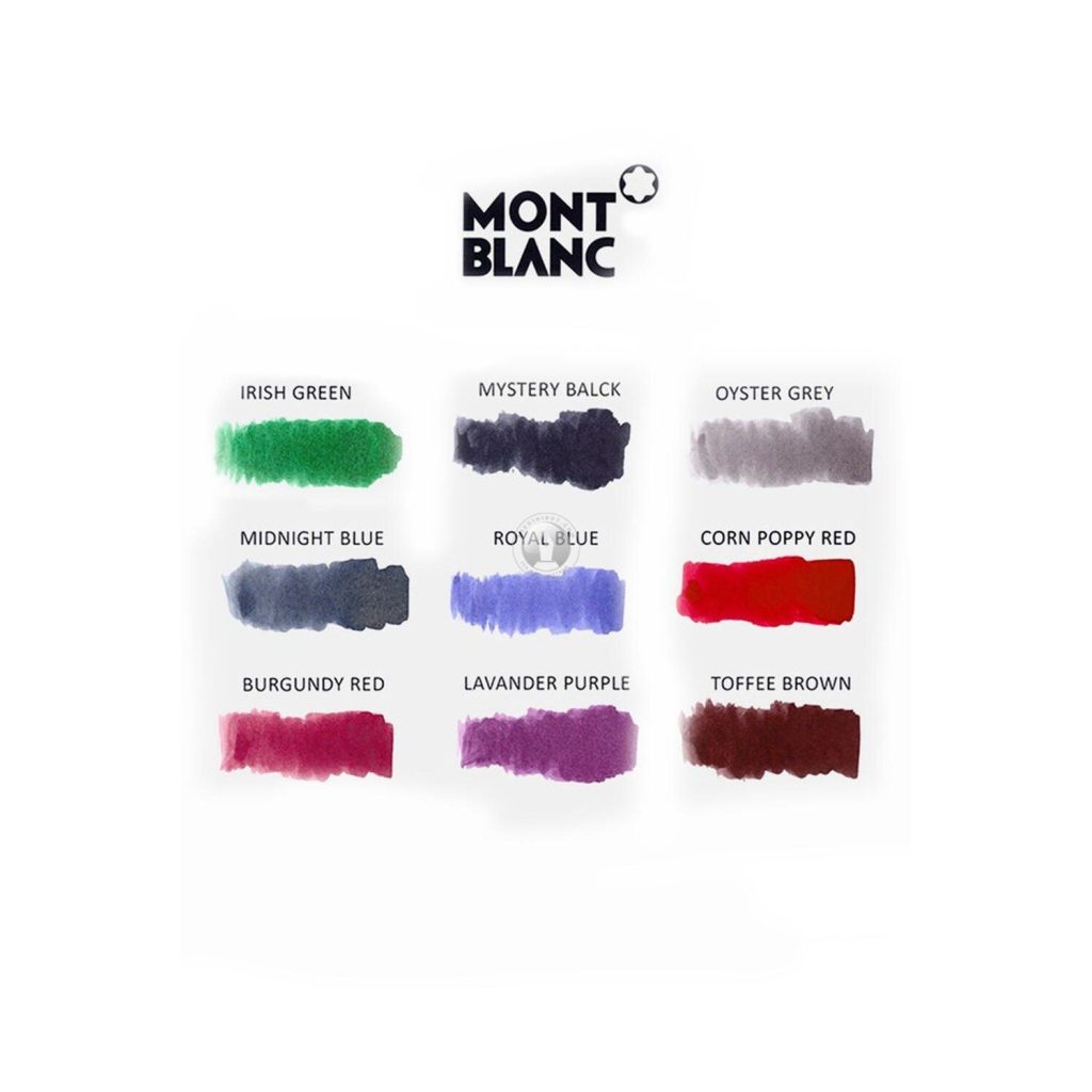 Còn rất nhiều màu mực cũng như dòng mực khác nhau, nhưng do đặc thù của thị trường Việt Nam sử dụng mực màu xanh. Cho nên Thế Giới Bút chúng tôi hân hạnh đồng hành cùng Montblanc cũng như quí khách hàng chuyên cung cấp Hộp mực chính xanh chính hãng Montblanc. Ngoài ra chúng tôi còn cung cấp tất cả các loại phụ kiện khác của hãng như ruột bi , ruột dạ bi, ruột dạ kim hoặc bình mực Montblanc…