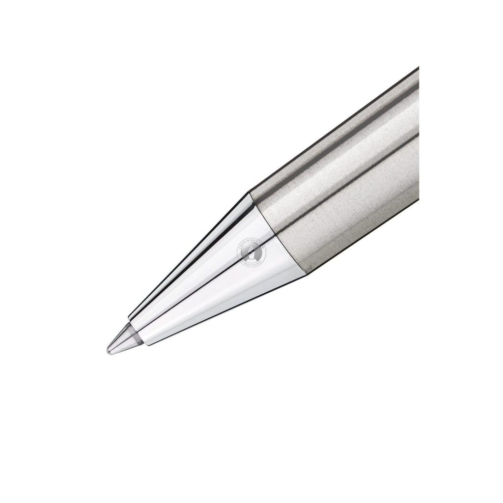 Bút dạ bi Montblanc 113344 được làm bằng thép không gỉ cao cấp. Với các phần vòng trang trí mạ bạch kim sáng bóng và mềm mịn. Đỉnh nắp khảm logo Montblanc màu trắng tinh tế và đẹp mắt.