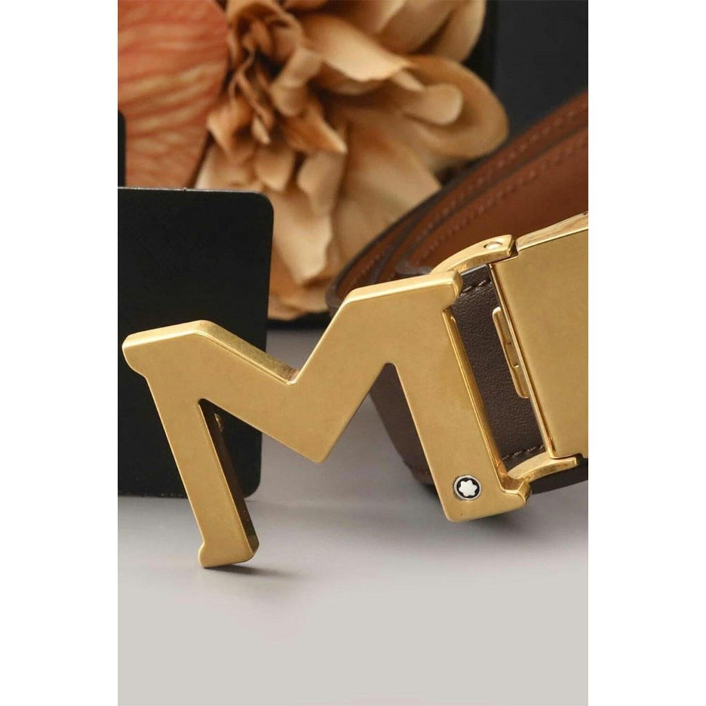 Dây đeo bằng da bò màu nâu đen bóng rất mềm mịn. Thiết kế này dành cho những người đàn ông đang tìm kiếm một cái nhìn tinh tế một mẫu thắt lưng vượt thời gian. Khóa chốt bằng thép không gỉ nguyên tấm đúc khuôn hình chữ M rất độc đáo được hoàn thiện bằng lớp vàng chống ăn mòn. Cơ chế đóng mở dễ dàng điều chỉnh độ dài theo ý muốn