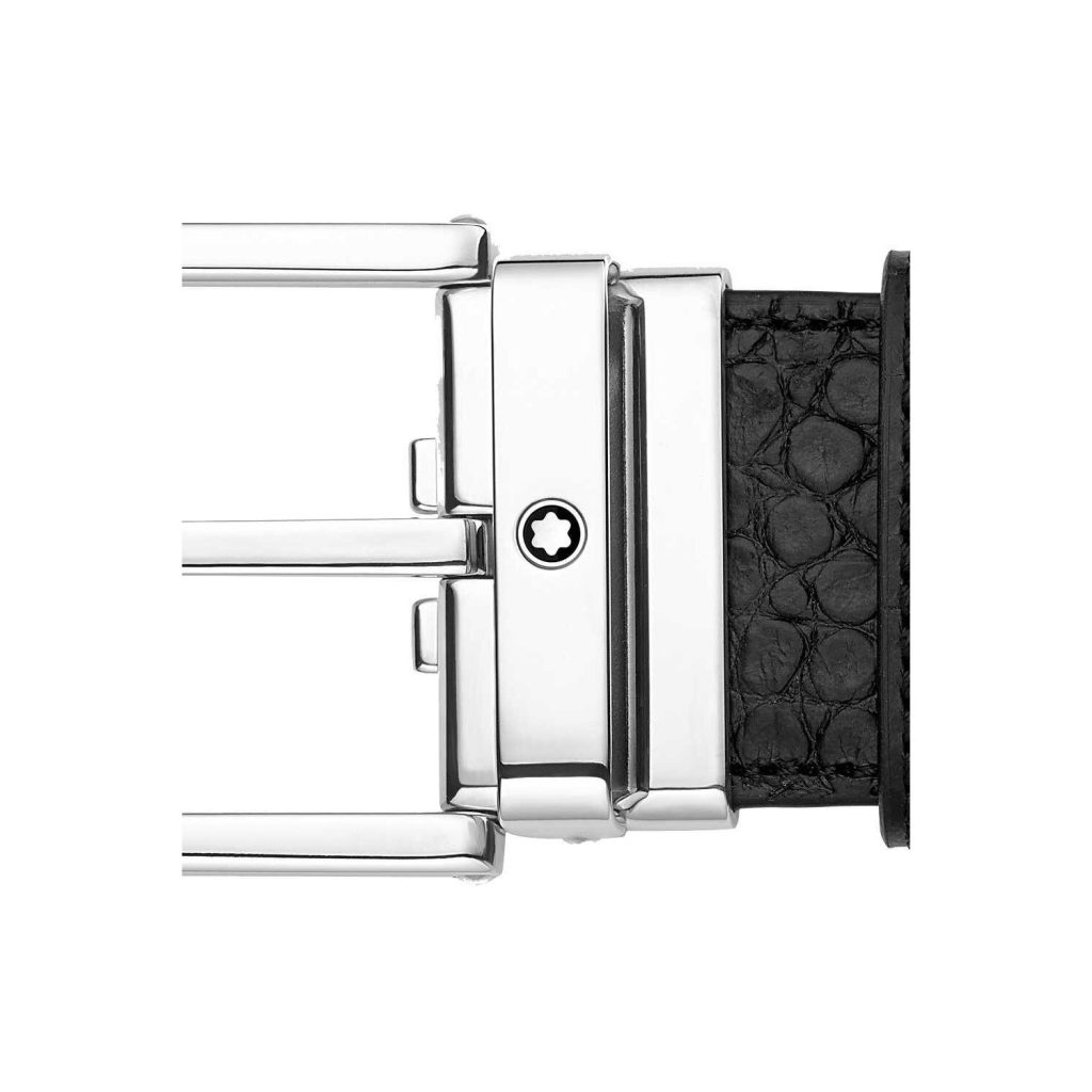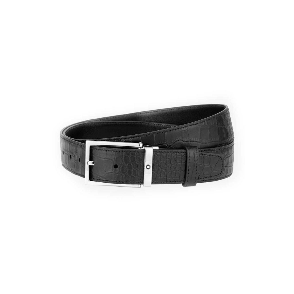 Dây nịt Montblanc Belts Black 35mm 126737 có chiều dài là 120 cm và chiều rộng là 3.5 cm, to hơn so với phiên bản cổ điển. Dây đeo bằng da bò tách lớp có in họa tiết cá sấu cho vẻ ngoài thanh lịch và tinh tế, có thể tự điều chỉnh rất thích hợp với phong cách công sở cổ điển. Montblanc 126017 với cơ chế dễ mở có thể tùy ý điều chỉnh độ vừa vặn vòng eo của khách hàng.