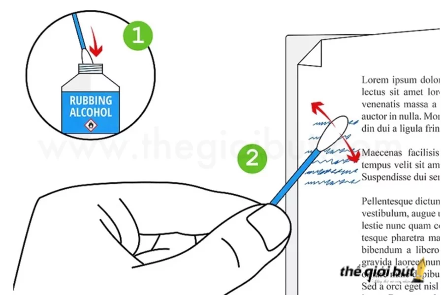 Chúng ta có thể bôi cồn tẩy rửa isopropyl lên bất kỳ tờ giấy nào mà bạn muốn xóa vết mực. Nếu bạn chỉ cần xóa một vệt mực nhỏ thì có thể dùng tăm bông thấm cồn. Nếu muốn xóa gần như toàn bộ mực trên trang giấy thì bạn ngâm tờ giấy vào một khay nhỏ có cồn trong khoảng 5 phút.