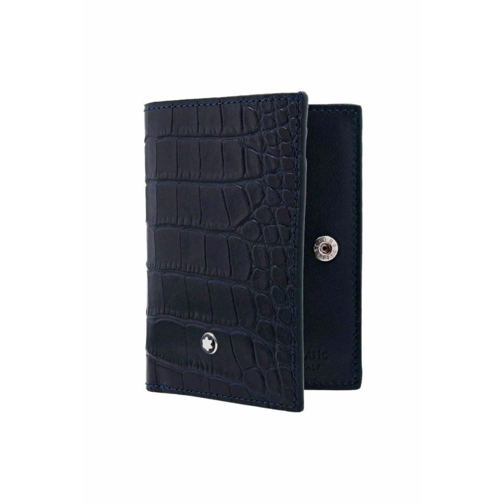 - Montblanc Meisterstuck Selection Business Card Holder MB126654 được chế tác từ da bò trơn và in hình cá sấu màu xanh dương đậm